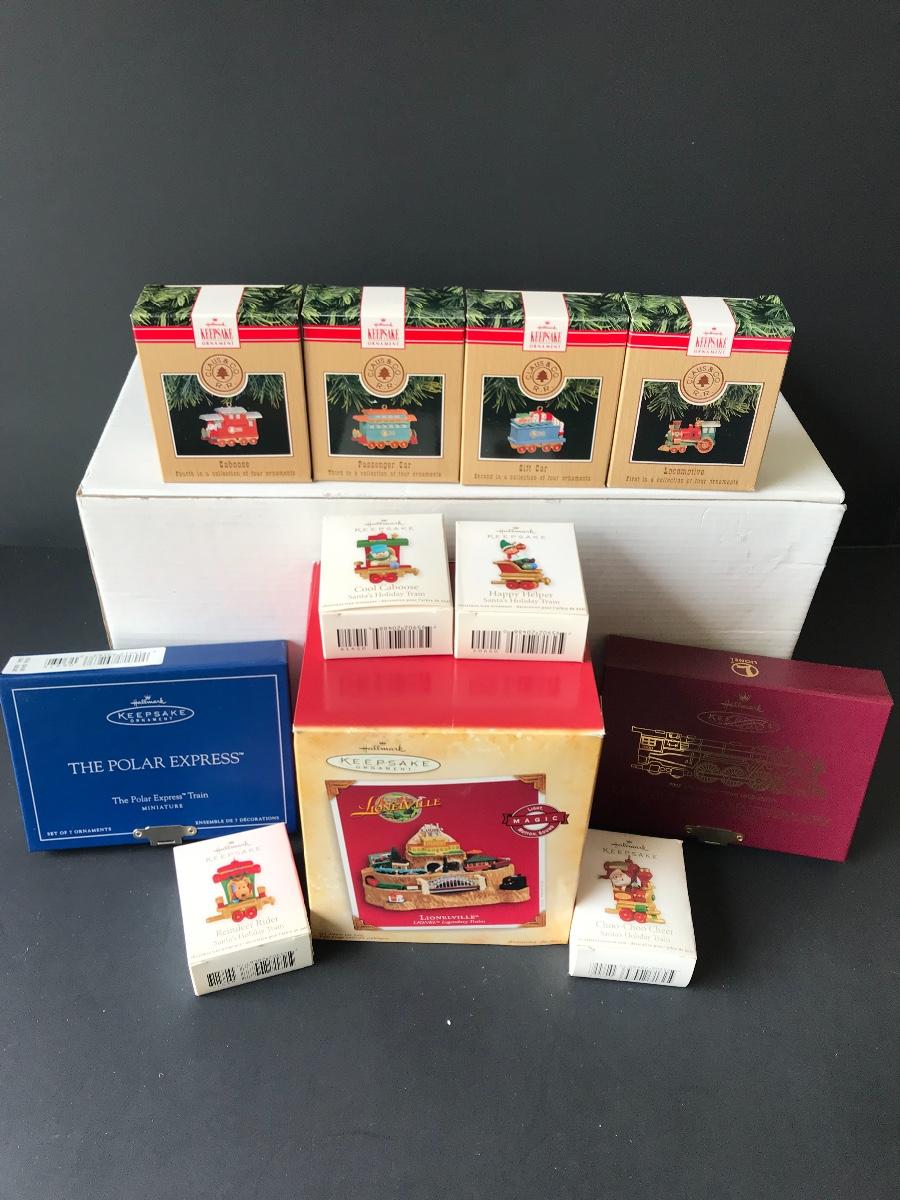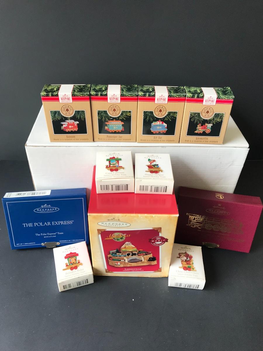 Lot 485: Hallmark Christmas Train Ornaments - Lionel, Polar Express & More