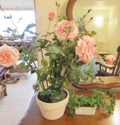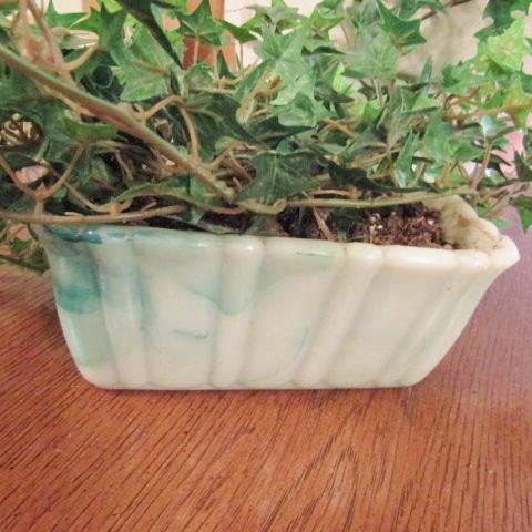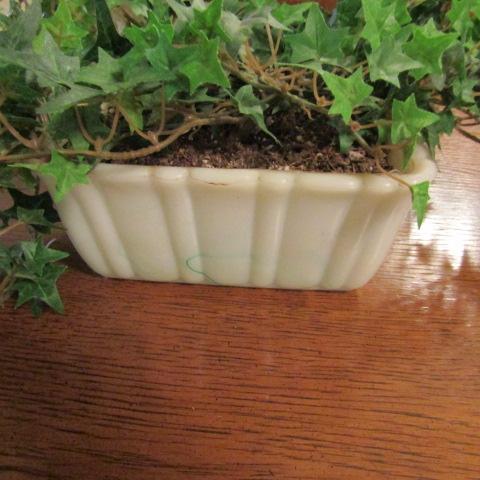 FAUX PLANT IN A GLASS MARBLED CONTAINER