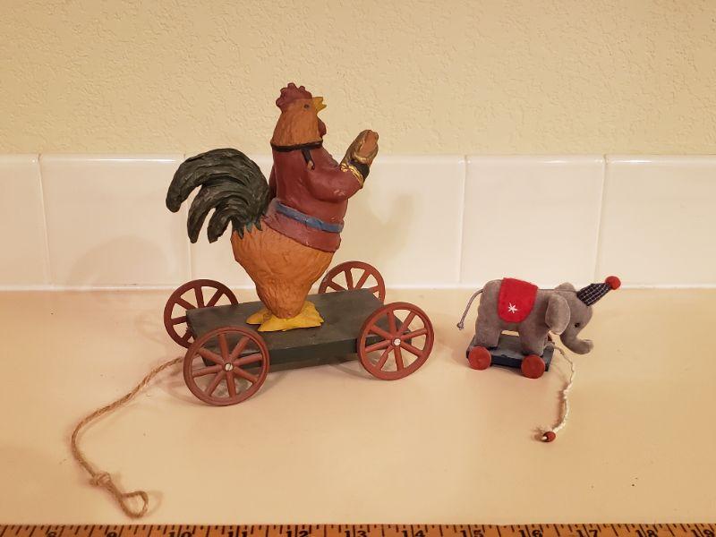 Lot 486: Rooster and Elephant Carts