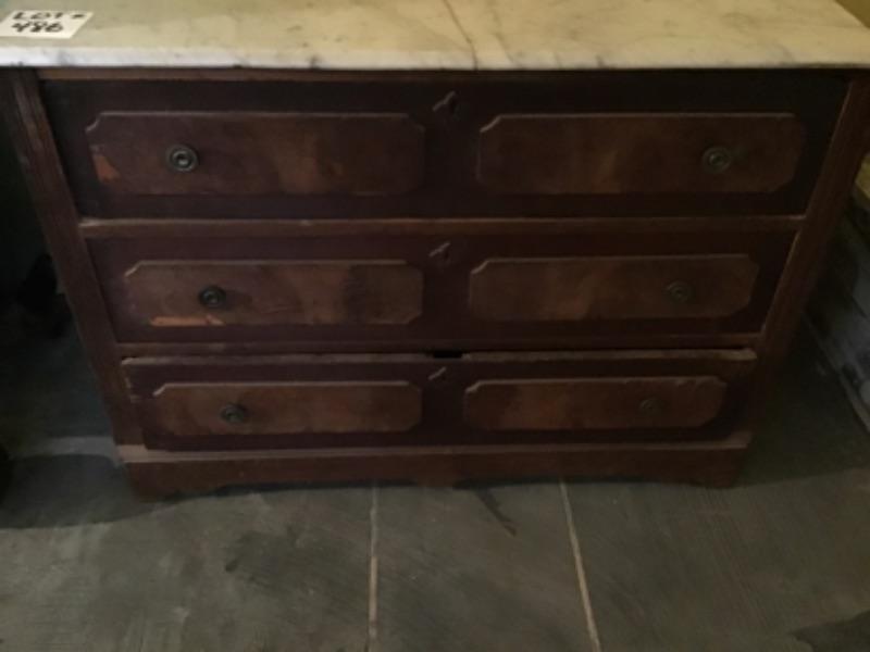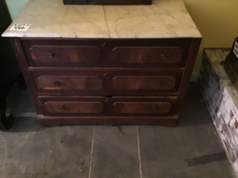 LOT # 486 Antique Victorian Marble Top 3- Drawer Dresser