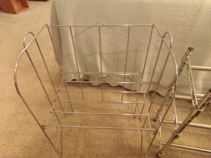 LOT 213  VARIOUS BASKETS, BLUE TOTE, SHOE & BLANKET CHROME RACKS