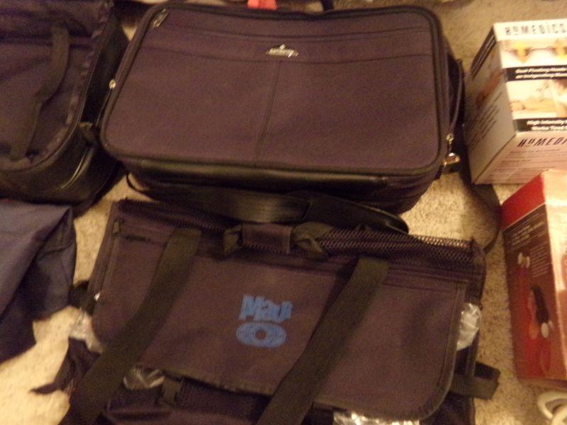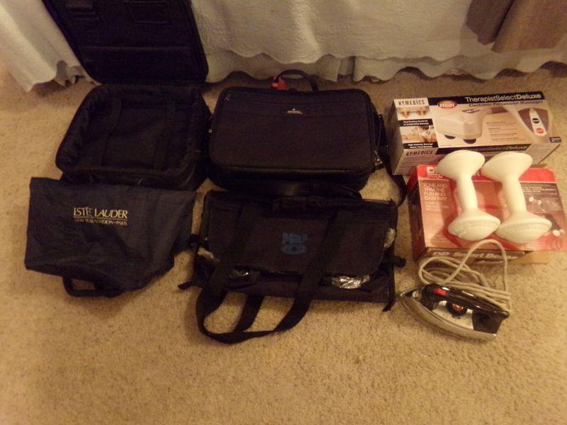 LOT 214 CARRY ON BAGS, MASSAGER, BRIEF CASE, HAND WEIGHTS, TRAVEL IRON