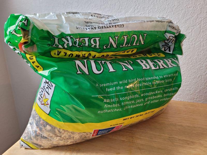 Lot #487: 1/4 Full 20lb Bag of NUT N' BERRY Bird Seed