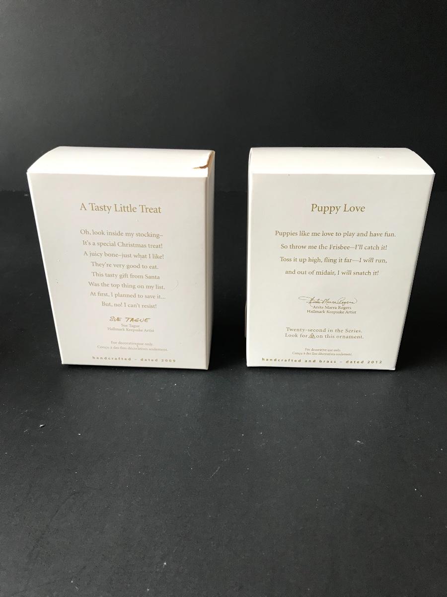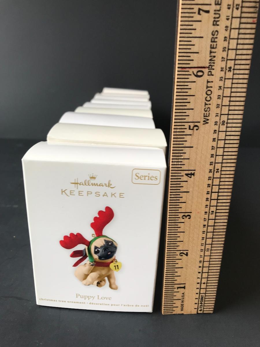 Hallmark Keepsake Dog Christmas Ornaments - Puppy Love & More. All Holiday items in this auction are as-seen. The client collected a lot of holiday pieces and some are new in box, some were displayed once and come with original box, and some have been displayed and come with no box. They are all pre-owned in some fashion and have been stored in an attic or on shelf in library. Please see all pictures. The pictures show condition, measurements if taken, and what is included in the lot. Due to the large amount that we photograph and the time frame, we are not always able to take measurements. All items unless noted, are pre-owned and have been used. Thank you