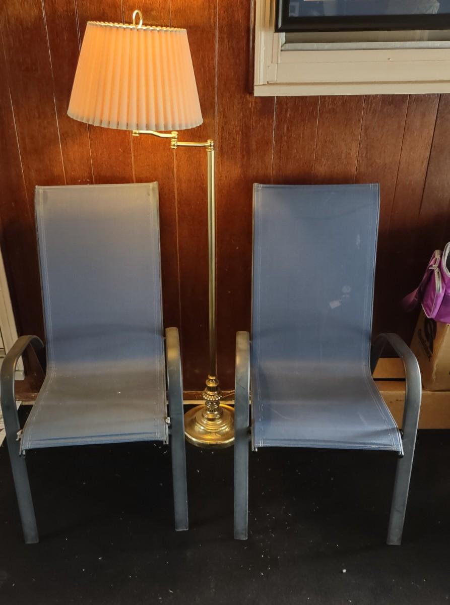 Lot 487: Outdoor Patio Chairs & Lamp