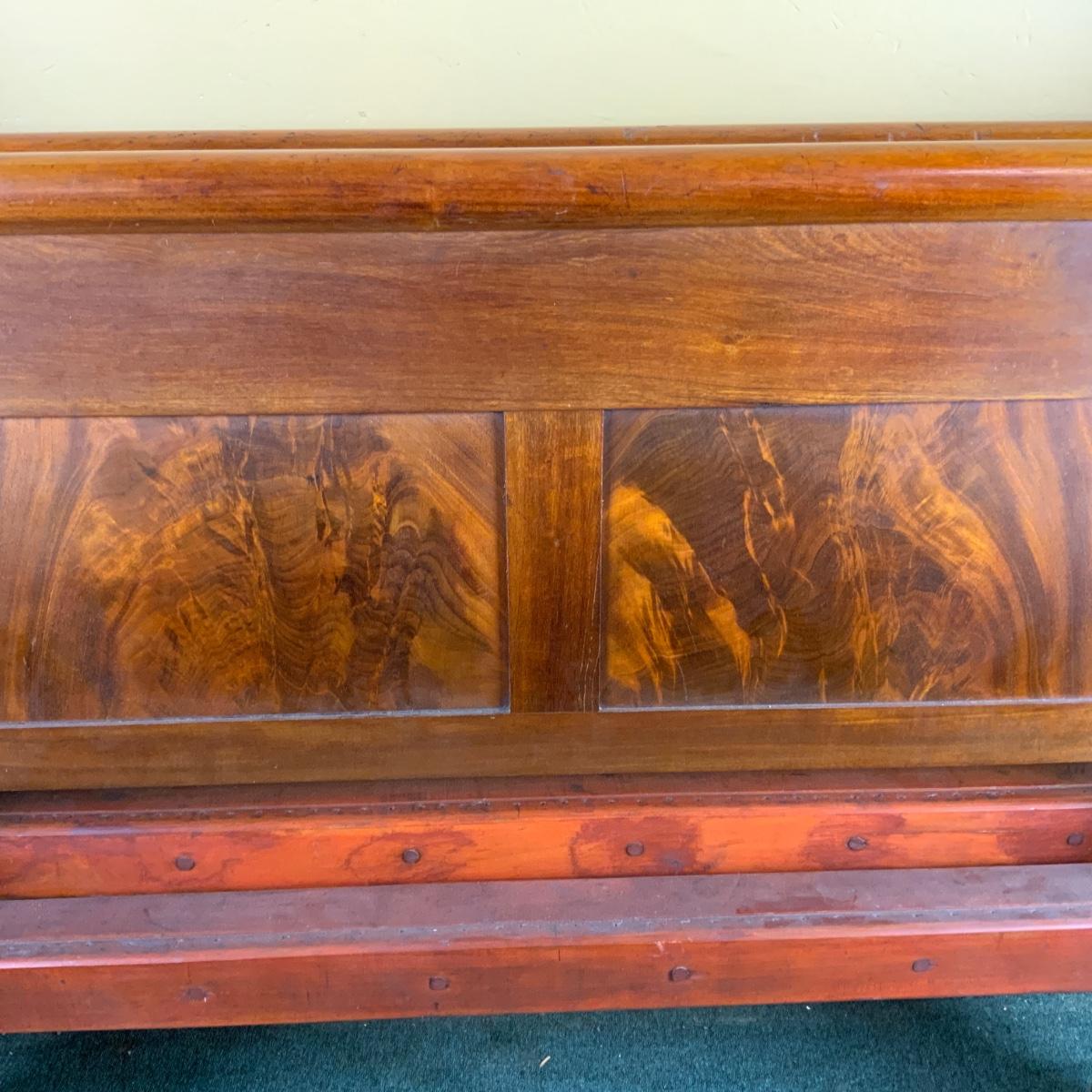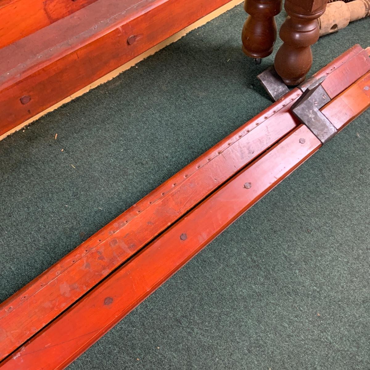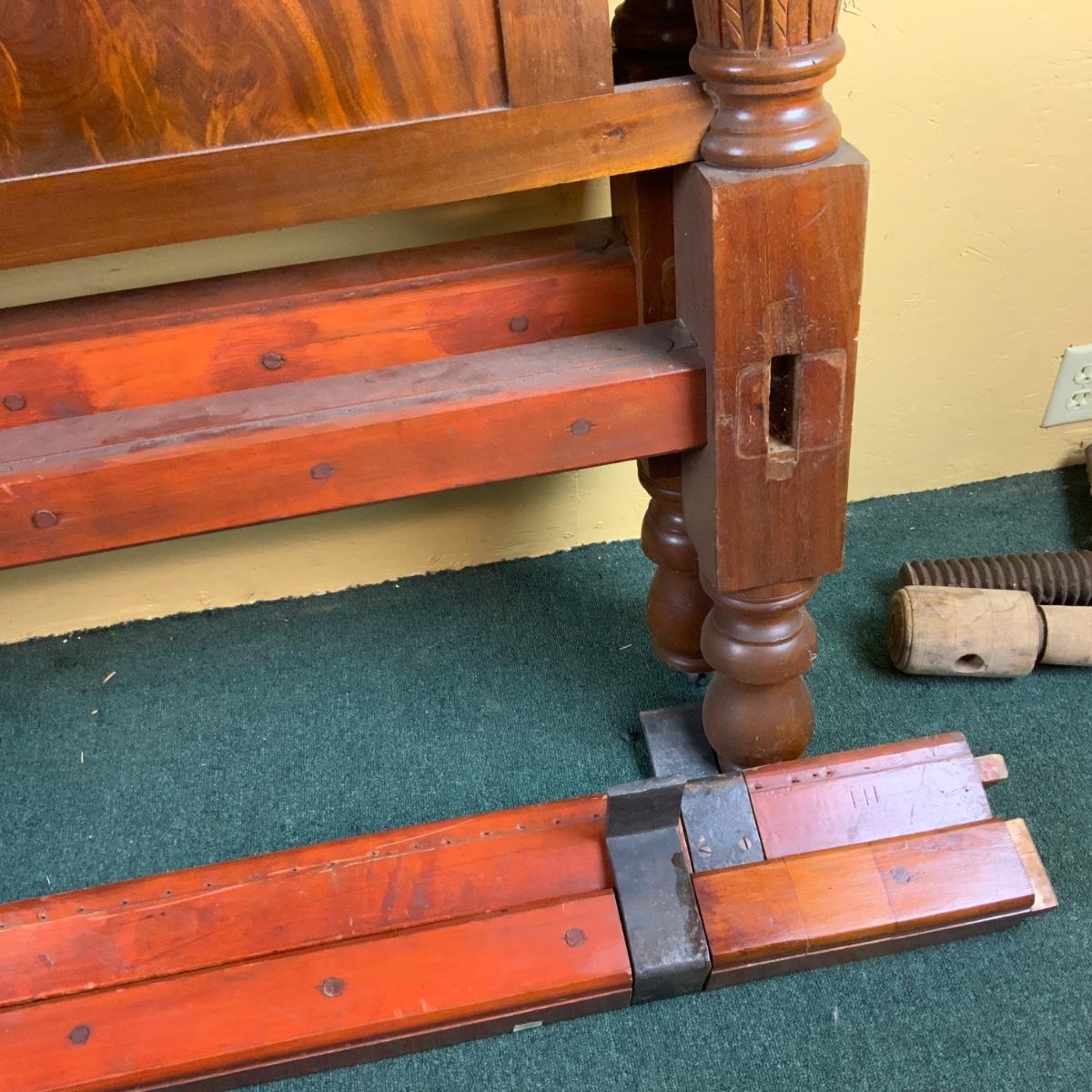 Impressive Pineapple Head and Footboard, with heavy duty rails. Rustic and timeless. The front and back panels look the same on either side. //::\\ Please see photos for details and condition. No attempt has been made to hide any imperfections. All items listed in this auction are warehouse items, and need to be cleaned. A majority of the items need restoration as well. All items are sold AS IS and WITHOUT GUARANTEE. If you are uncertain about an item, DO NOT BID. Due to the nature of this online auction in-person inspection is HIGHLY recommended. All Sales are FINAL. Pick Up Times are FIRM. Please confirm with your own schedule that you can pick up in the scheduled times listed in the Terms and Conditions. Any questions please message the auctioneer. DO NOT Contact The Harp Gallery.