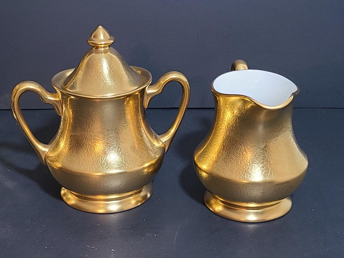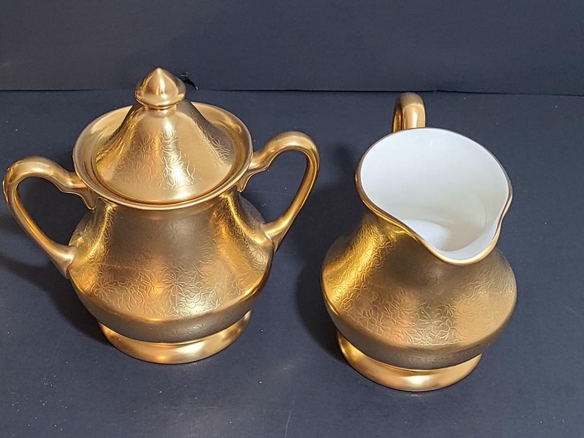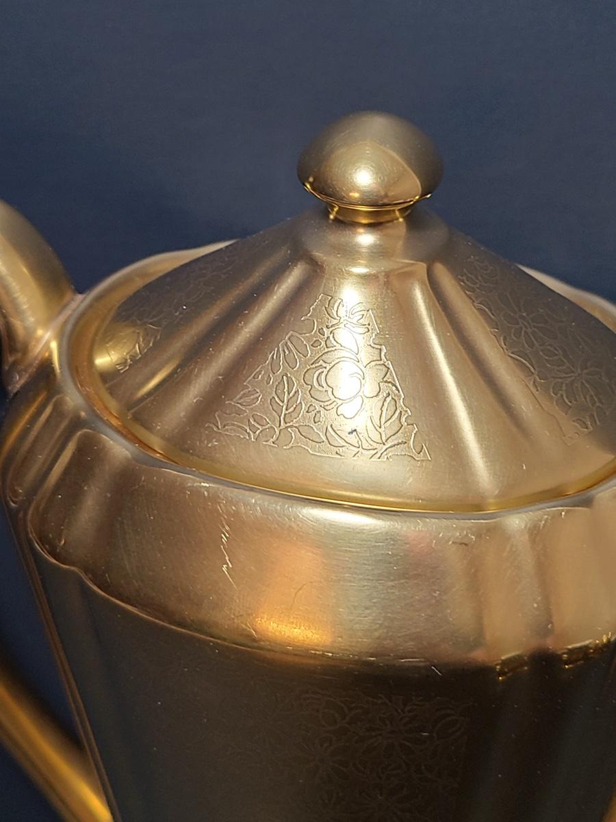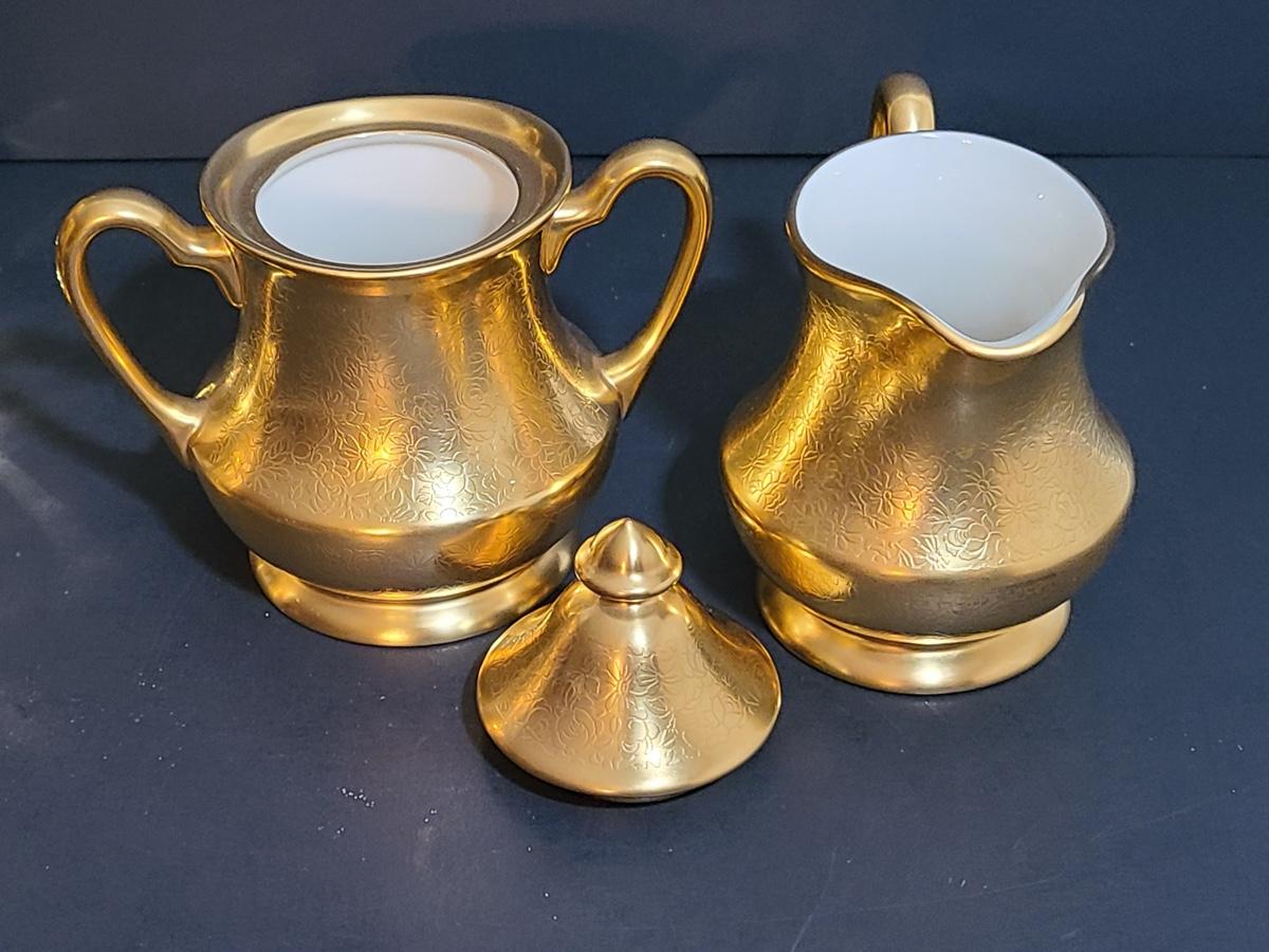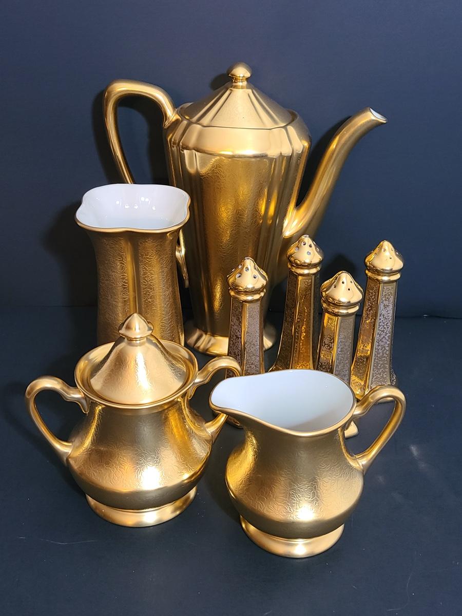 Lot 488: Vintage Pickard "Gold" Tea Set, Vase, and Salt/Pepper Sets