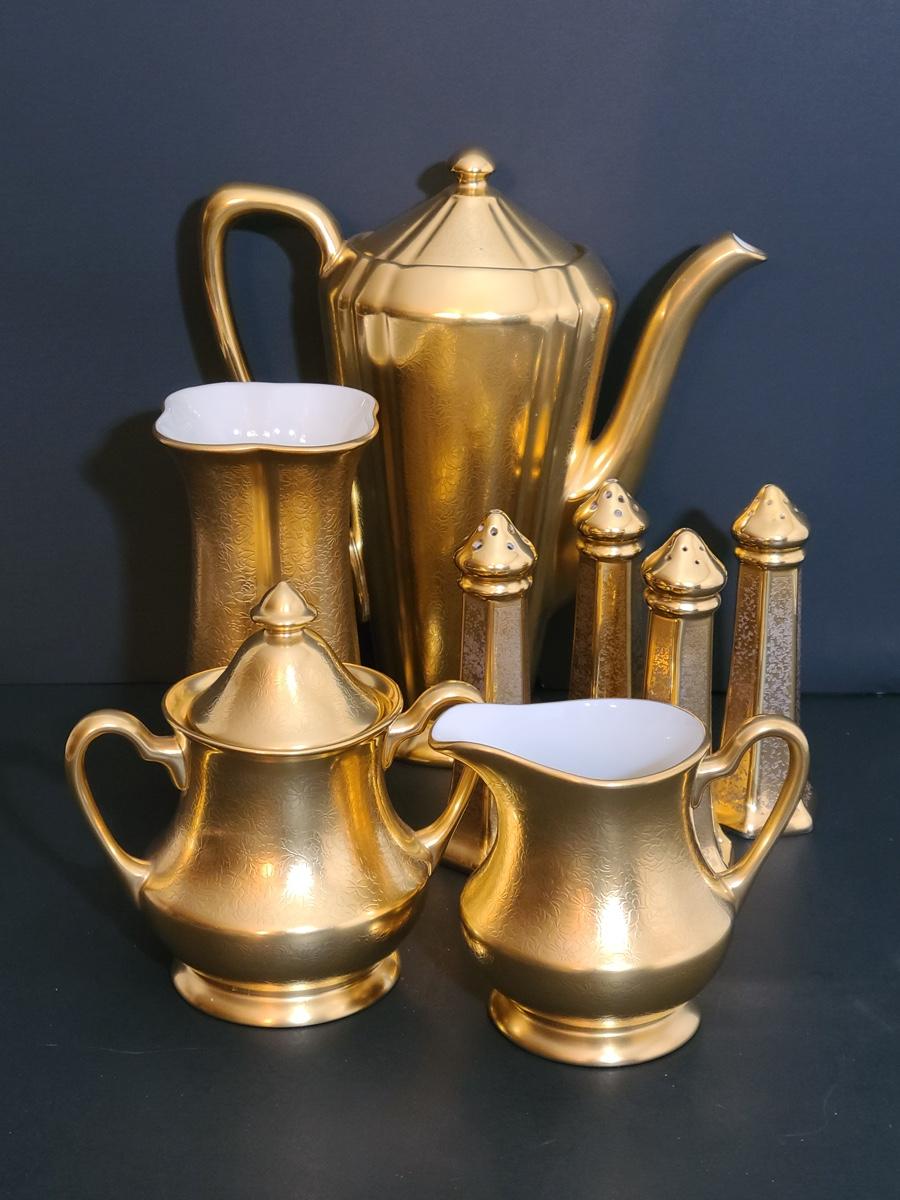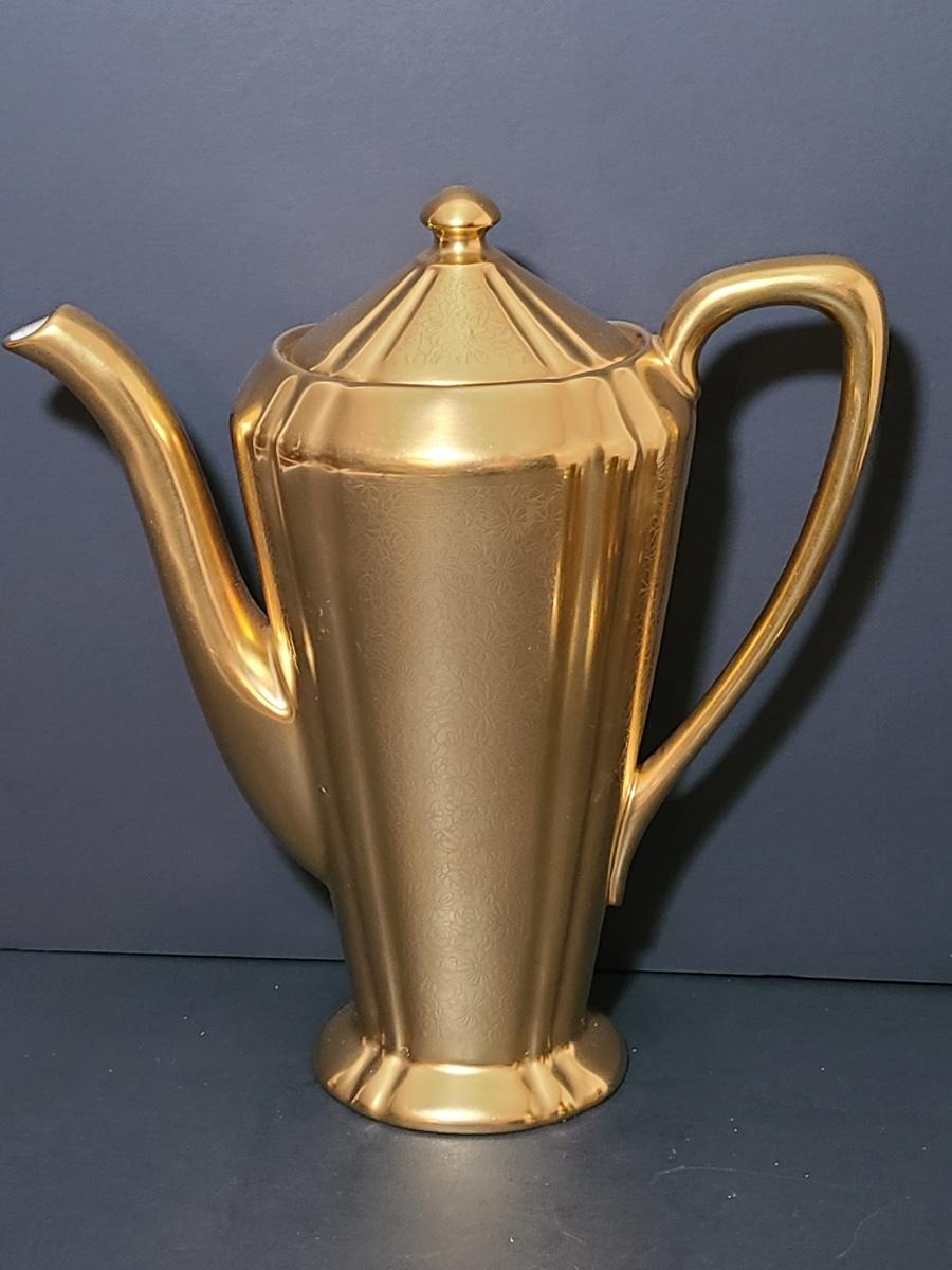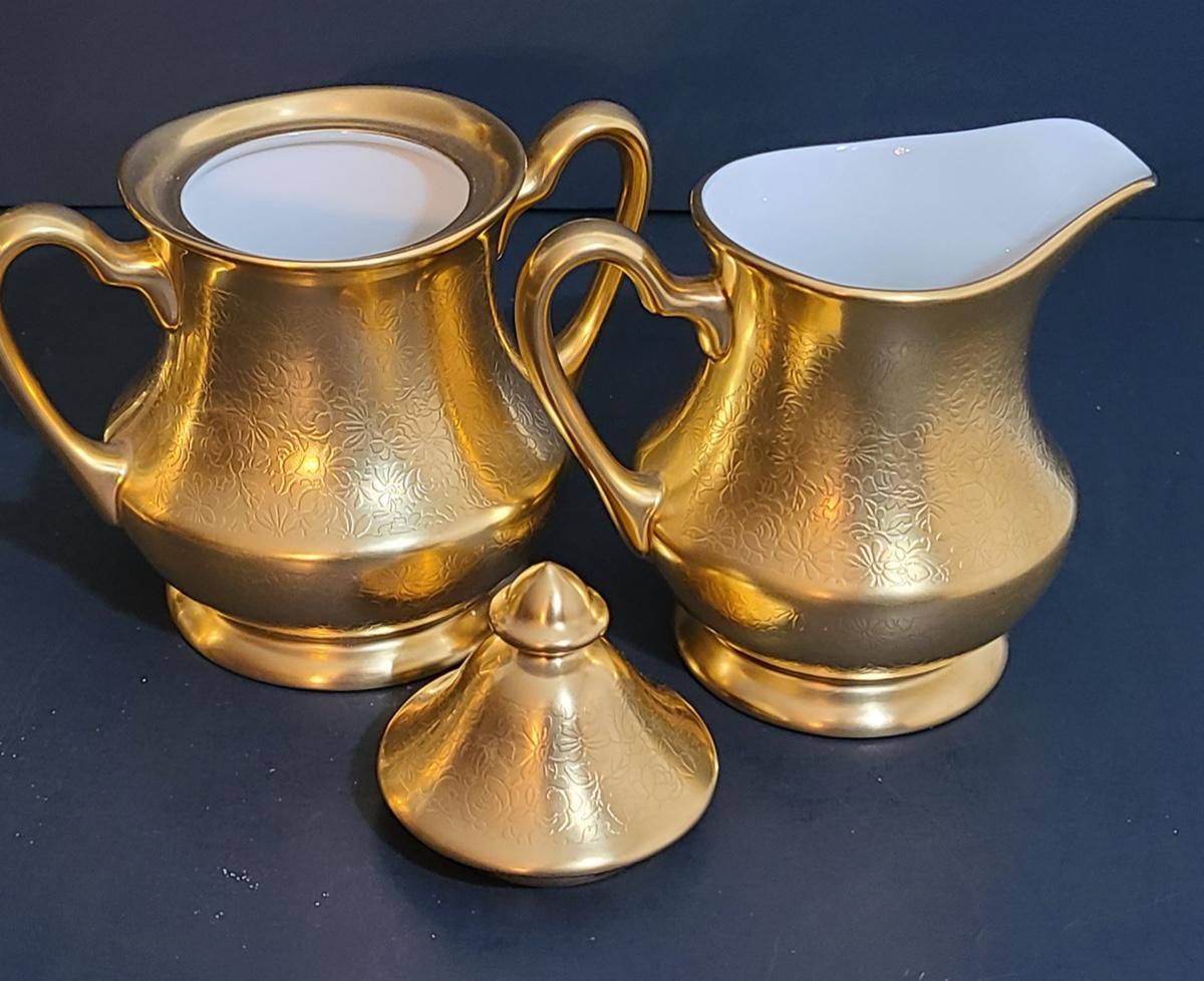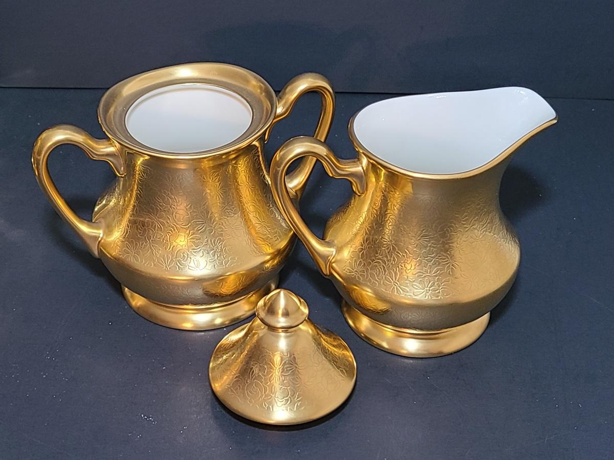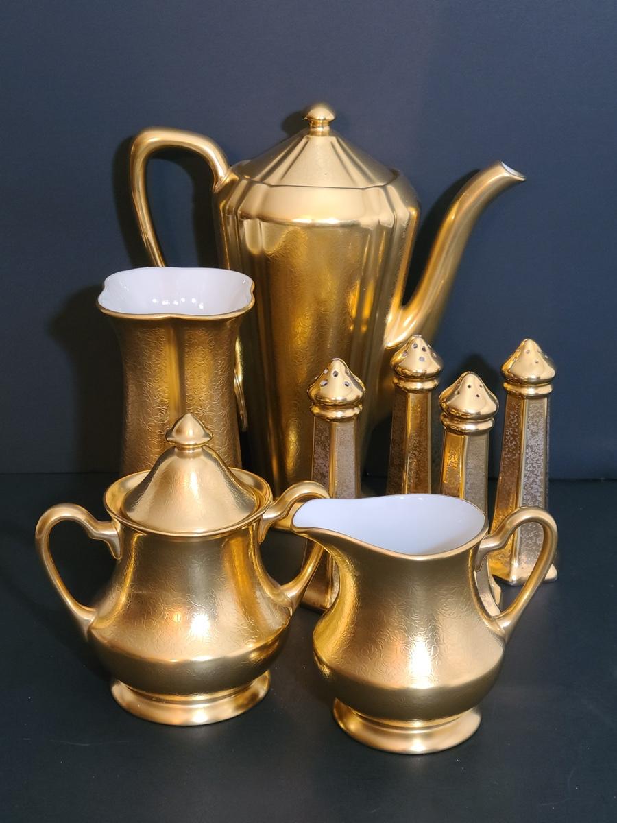 Lot 488: Vintage Pickard "Gold" Tea Set, Vase, and Salt/Pepper Sets