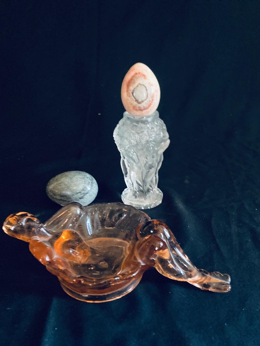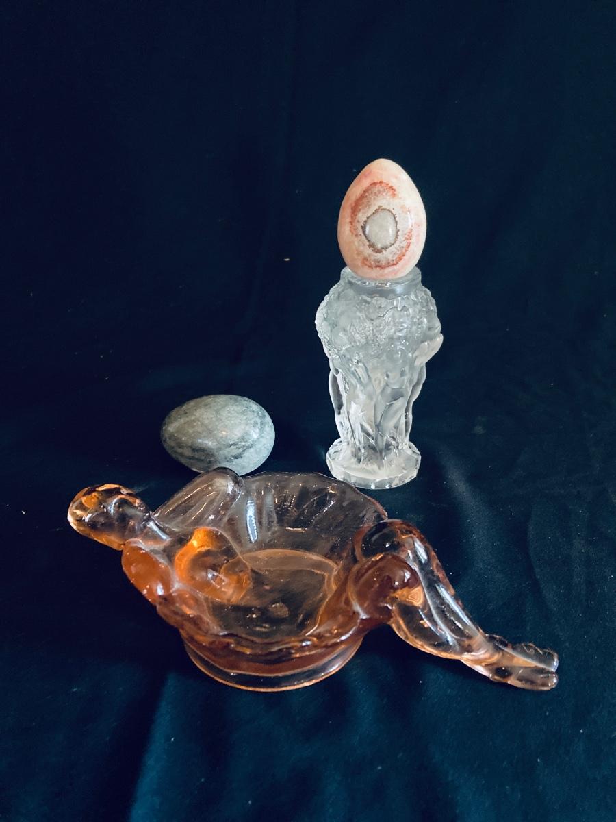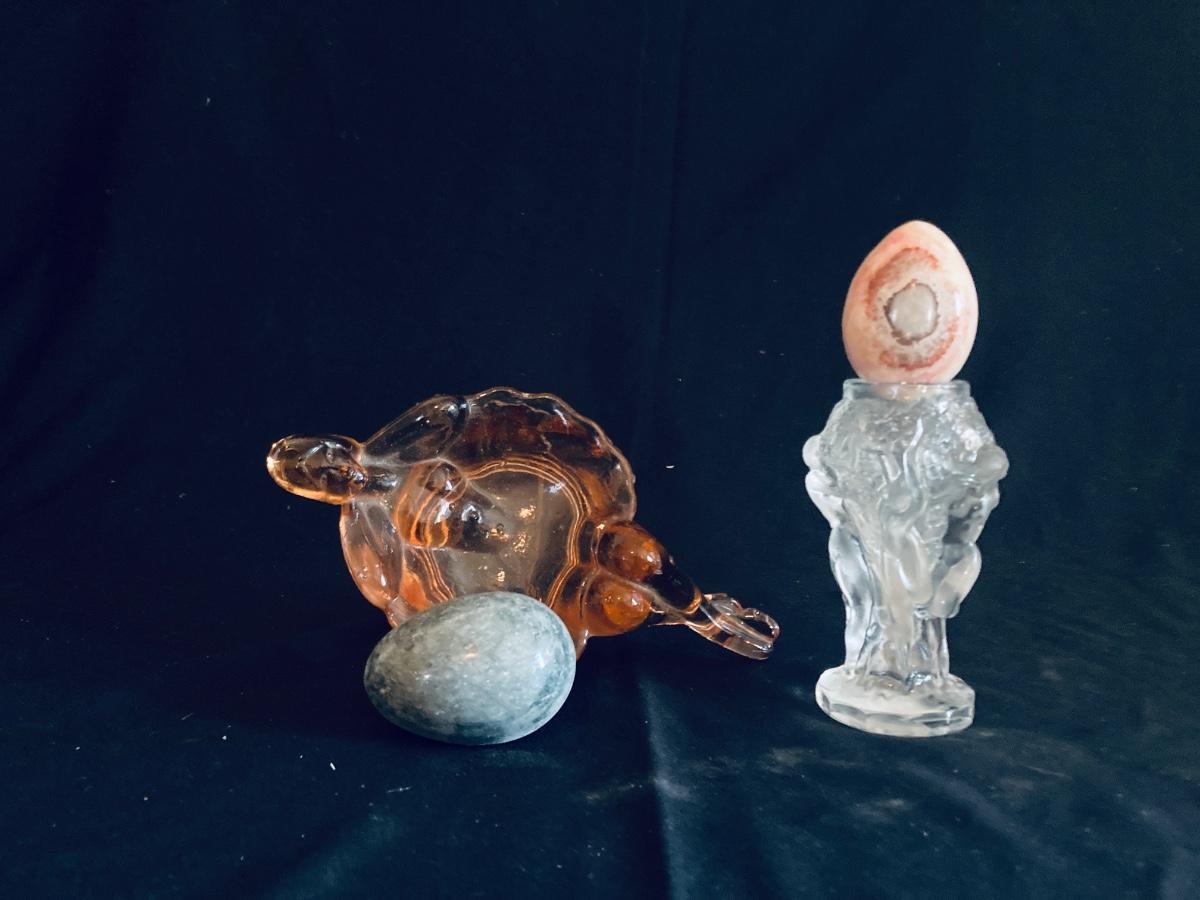 NAKED LADY VASE AND BOWL, MARBLE EGGS