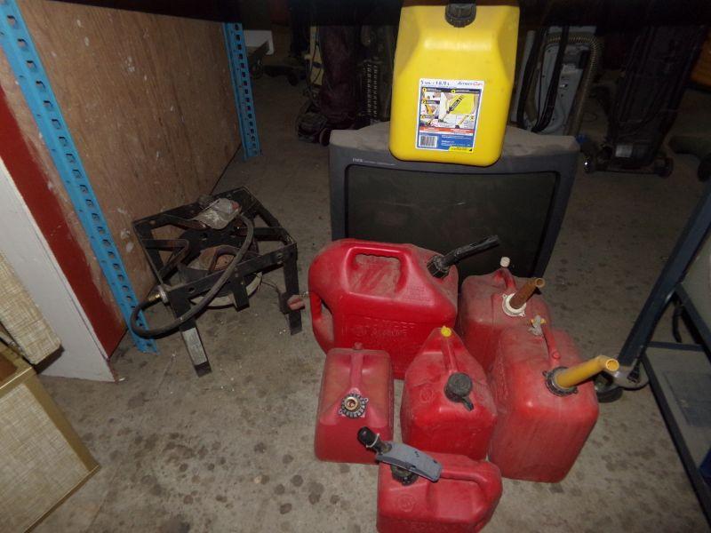 LOTS OF GAS CONTAINERS AND A PROPANE BURNER