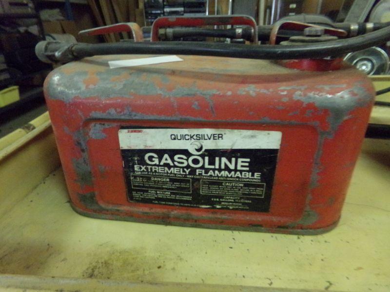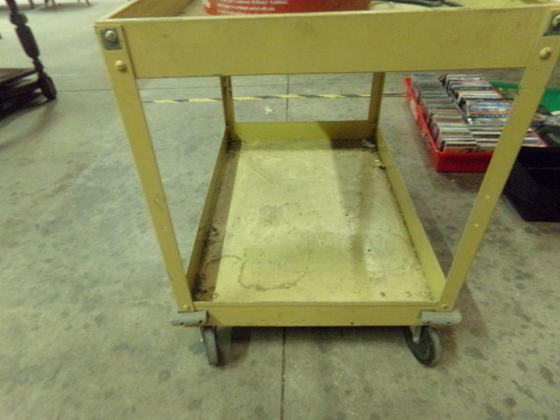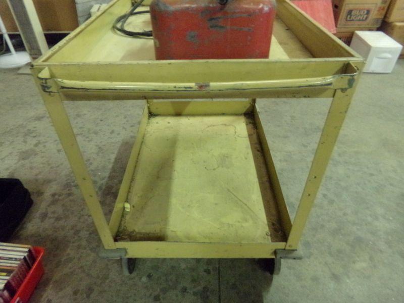 2 GAS CANS WITH HOSES, MAY CONNECT TO BOAT MOTOR. ALSO A METAL CART WITH WHEELS. THE CART MEASURES 32"H x 38-1/2"W x 24"D