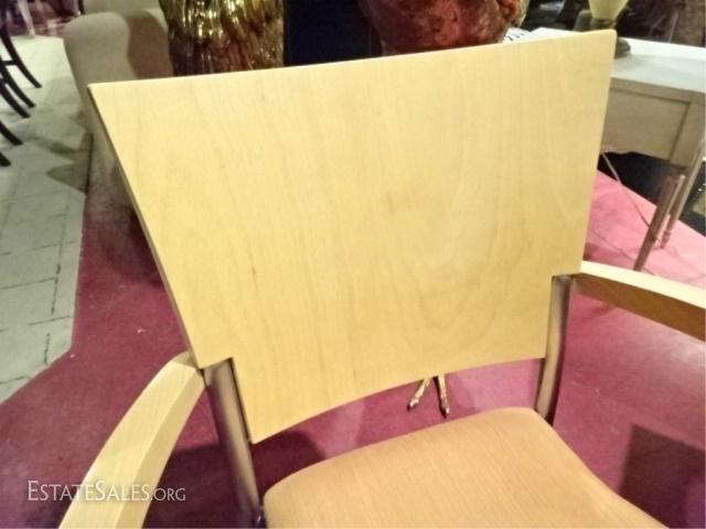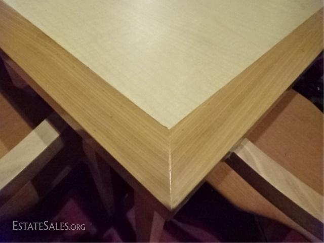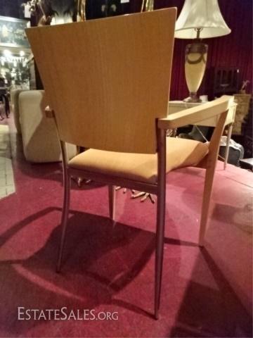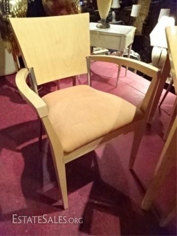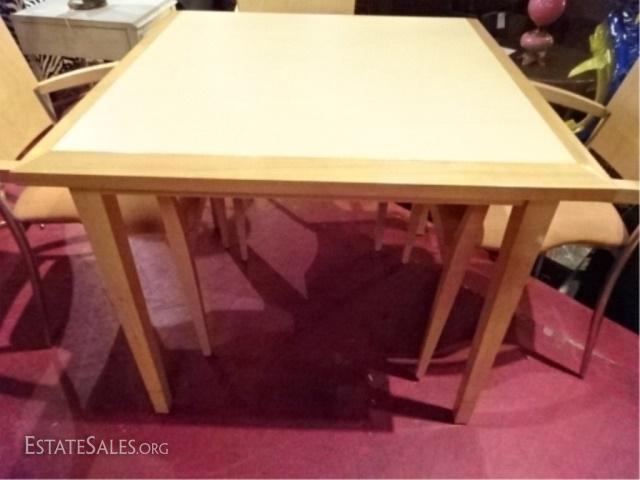 LOT 48C: 5 PC MODERN TABLE AND 4 CHAIRS, LIGHT WOOD FINISH, METAL LEGS, VERY GOOD GENTLY USED CONDITION WITH MINOR WEAR