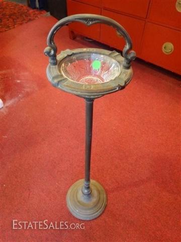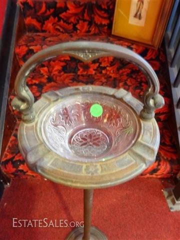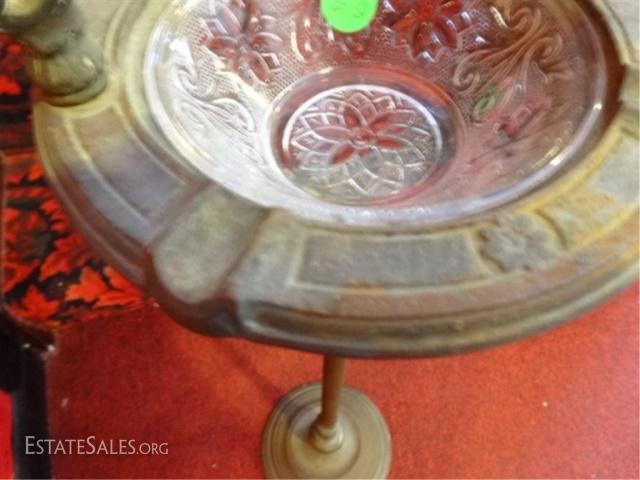 LOT 48D: VINTAGE GLASS AND METAL ASHTRAY ON STAND