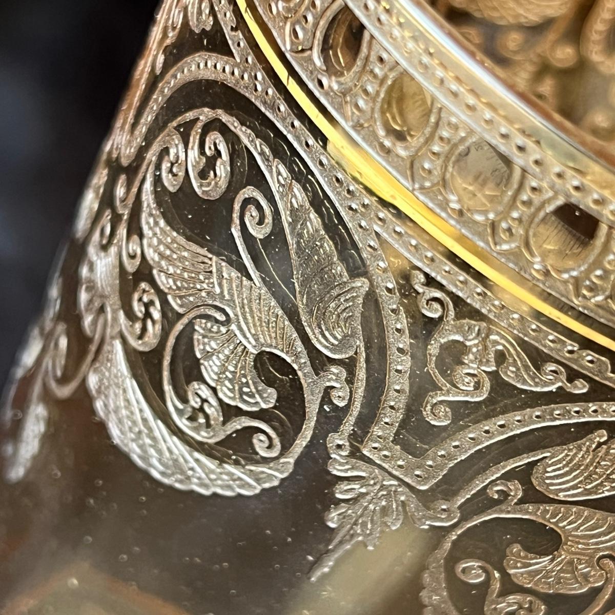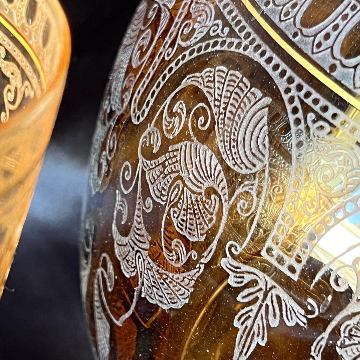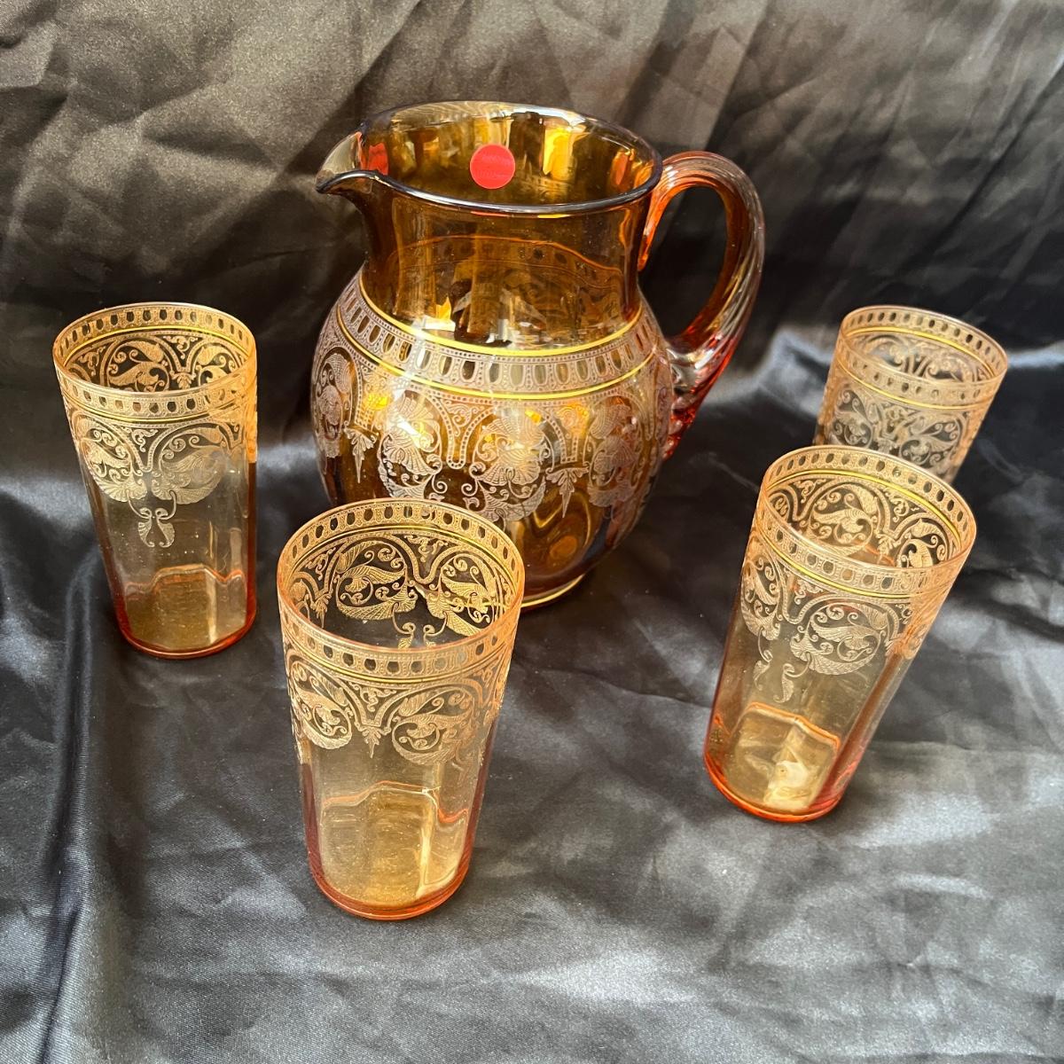 This is Cambridge's 704 etching. It is rather hard to find, and the tumblers are in excellent shape! Don't miss this great pattern.