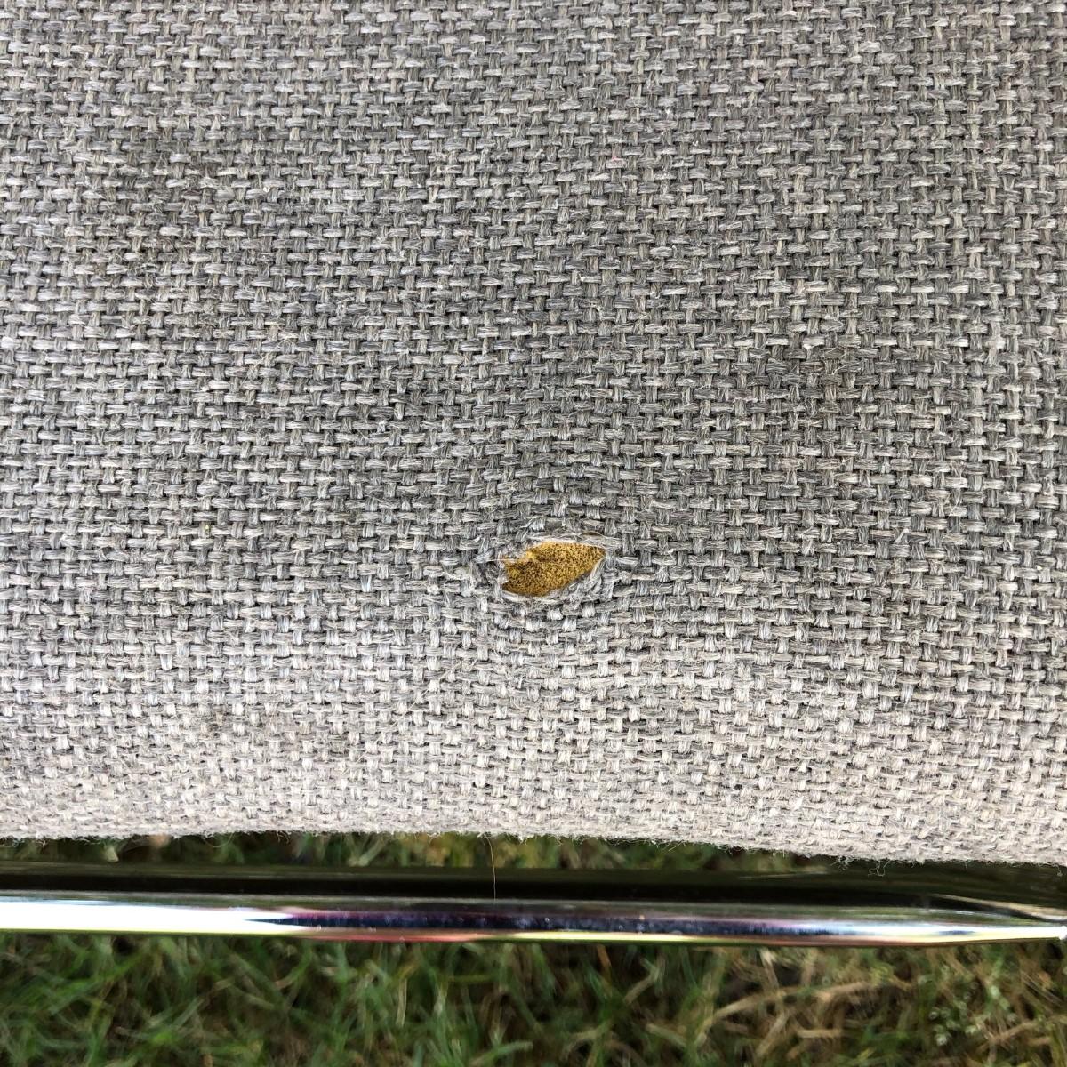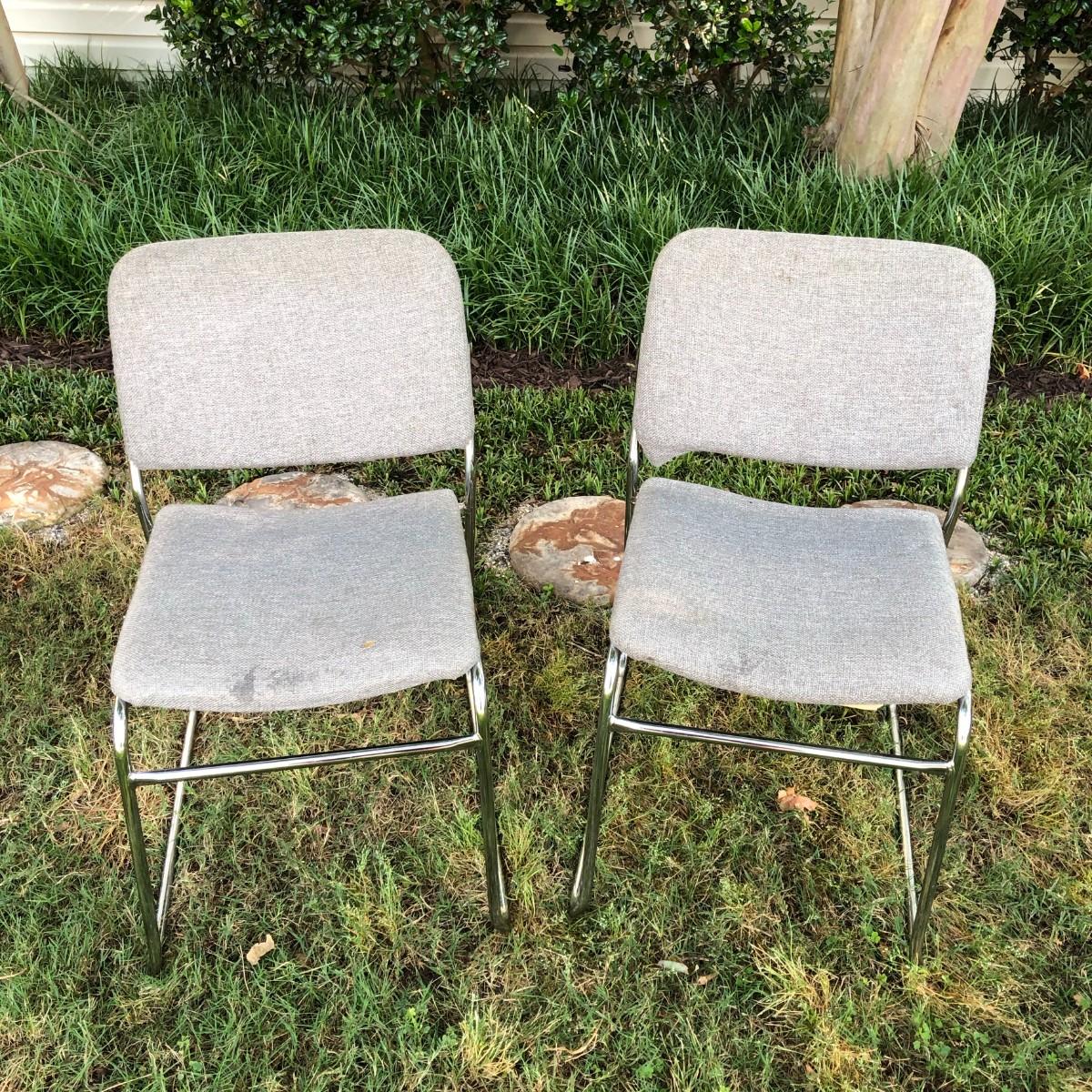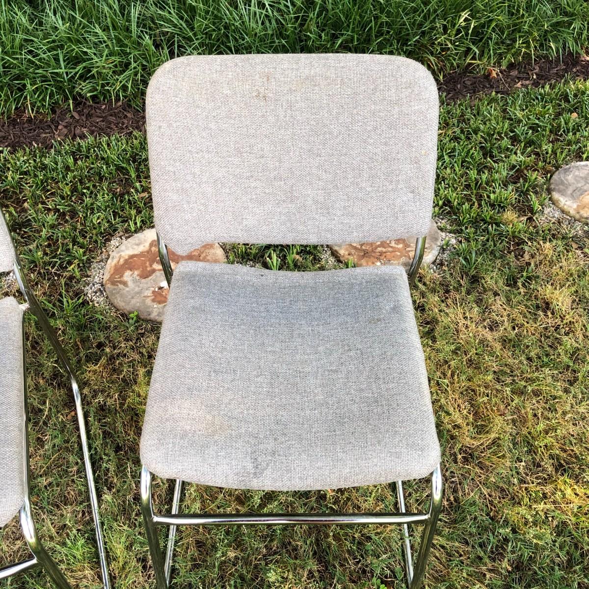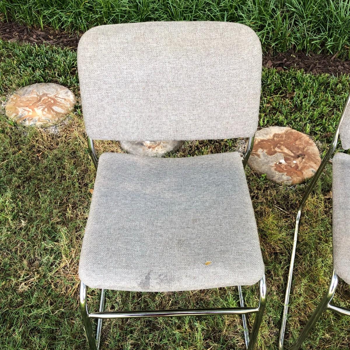 Please see the pictures for condition, they need light cleaning, but are otherwise in good condition. The only issue with this set is that one of the chairs has a small hole in the fabric which could probably be repaired. The seat is about 17.75" tall.