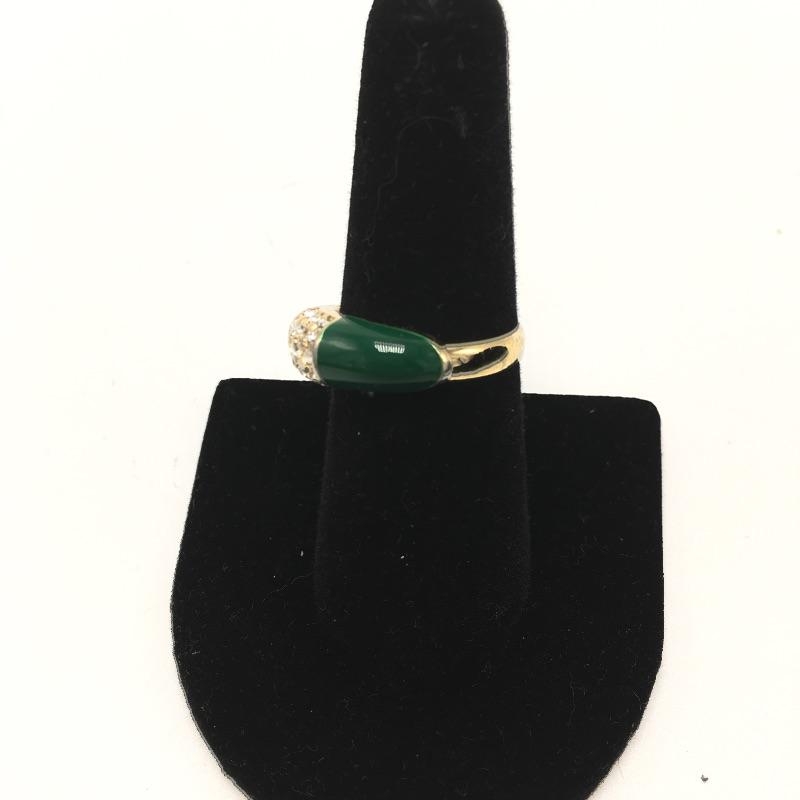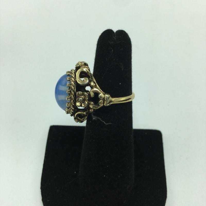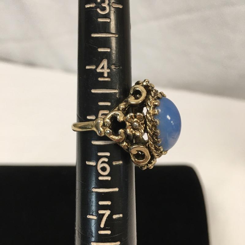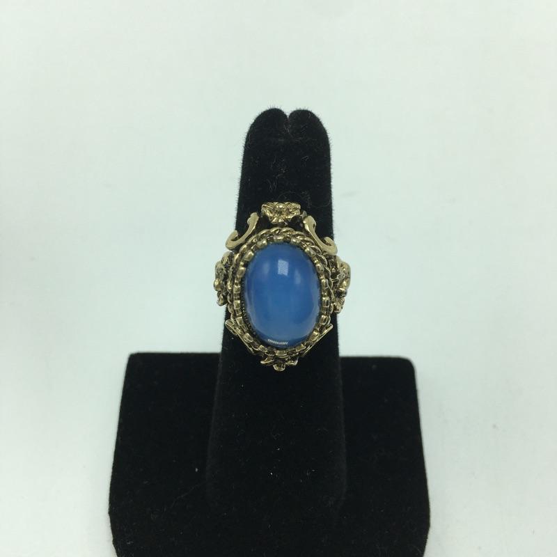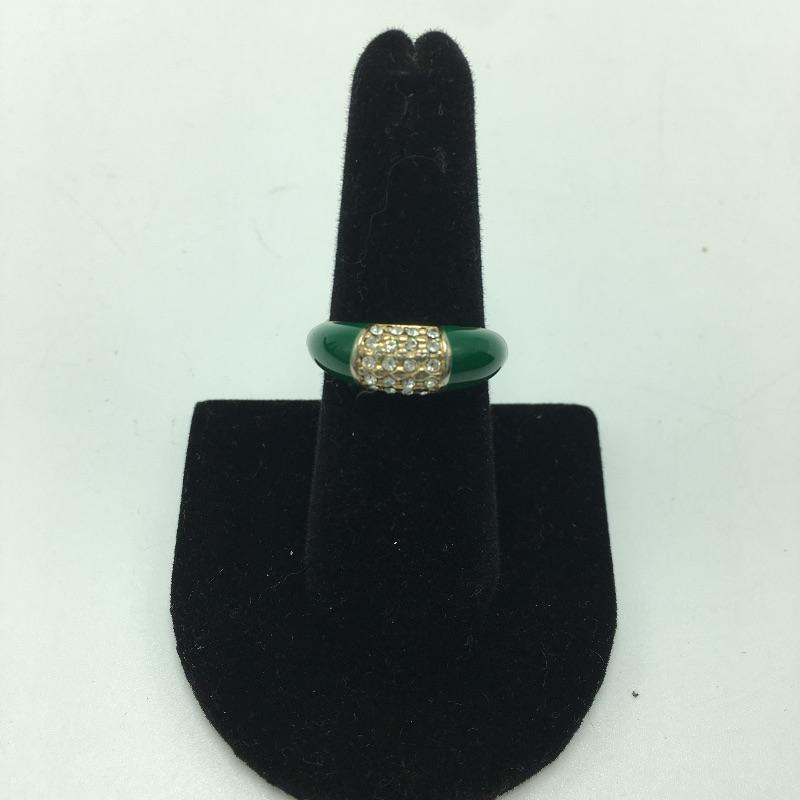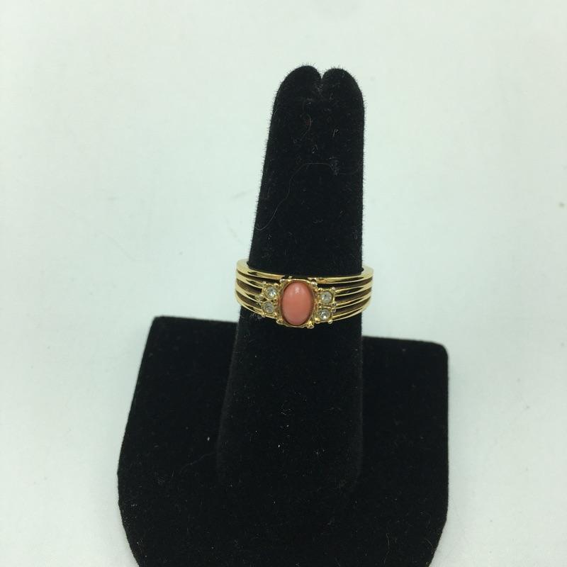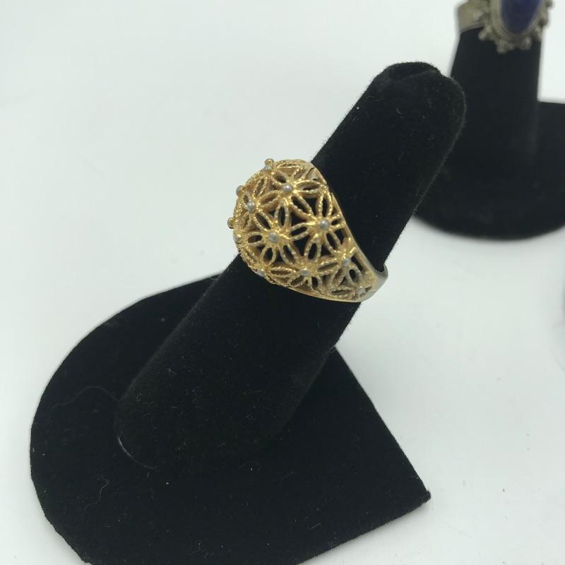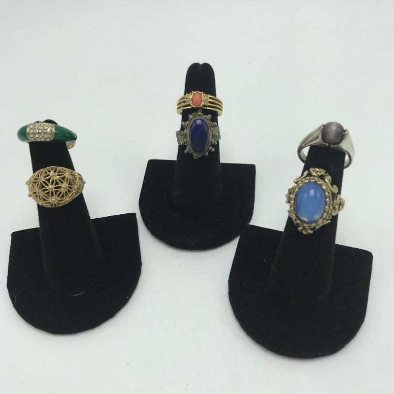 Six fashion rings. Lot includes six fashion rings in a variety of styles and colors that include an emerald colored ring with clear stones in center, lapis colored ring, blue moon colored ring, peach colored ring and a gray bead on ring. Lastly an 18KT GE ring will add some sparkle to your day.