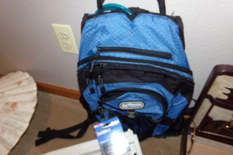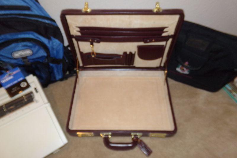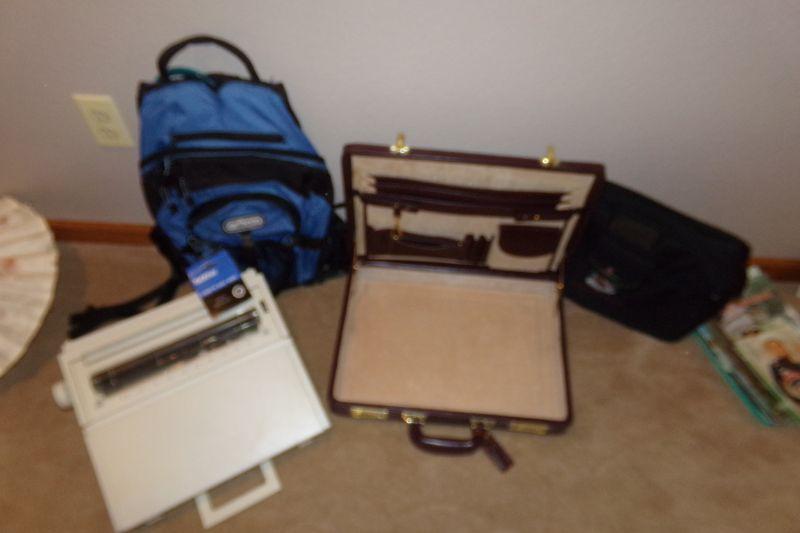 Brother AX-250 Electric Typewriter, Blue backpack on wheels and hard-sided Briefcase