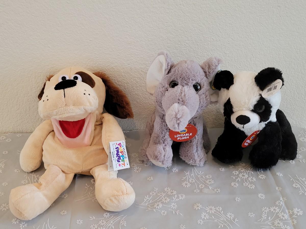 Lot 49: New Musical Puppy Puppet, Elephant & Panda Plushies