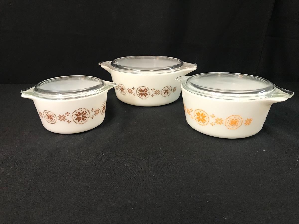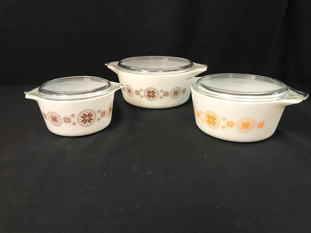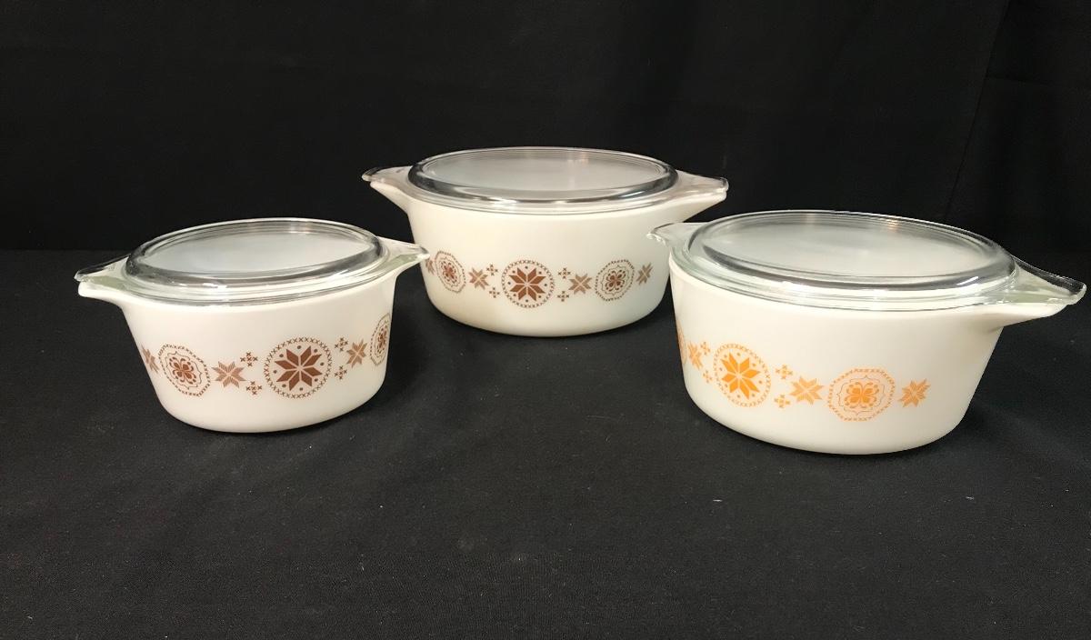 Lot 49: Vintage Pyrex Ovenware Six-Piece Set With Glass Lids