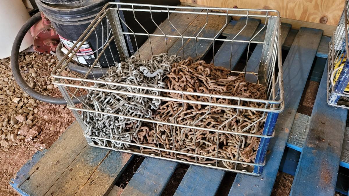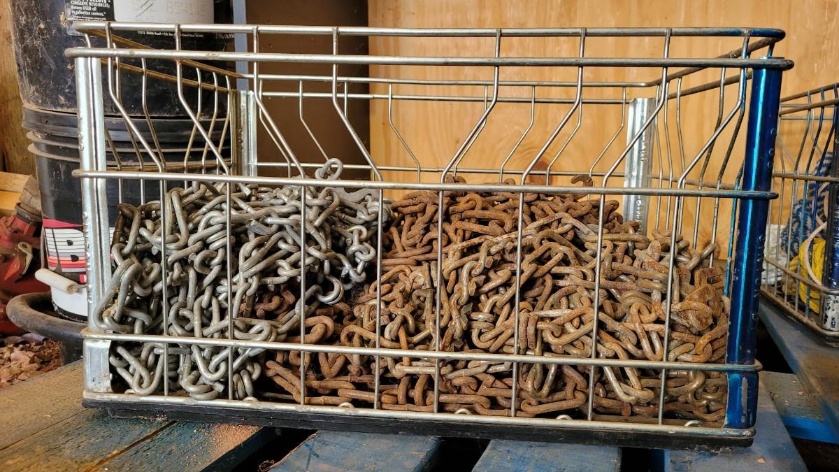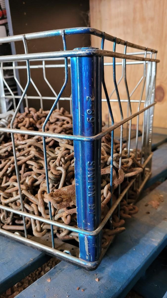 Lot 49: Vintage Metal Milk Delivery Crate w/ Assorted Chain Inside