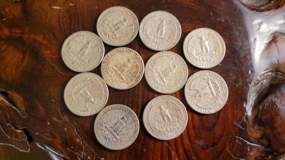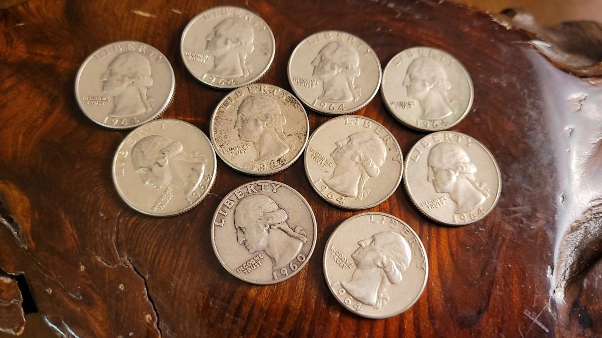 This lot contains (10) 1960's Era 90% Silver quarters in Assorted condition. What you see is exactly what you will recieve. LOT #3