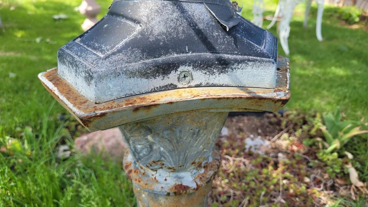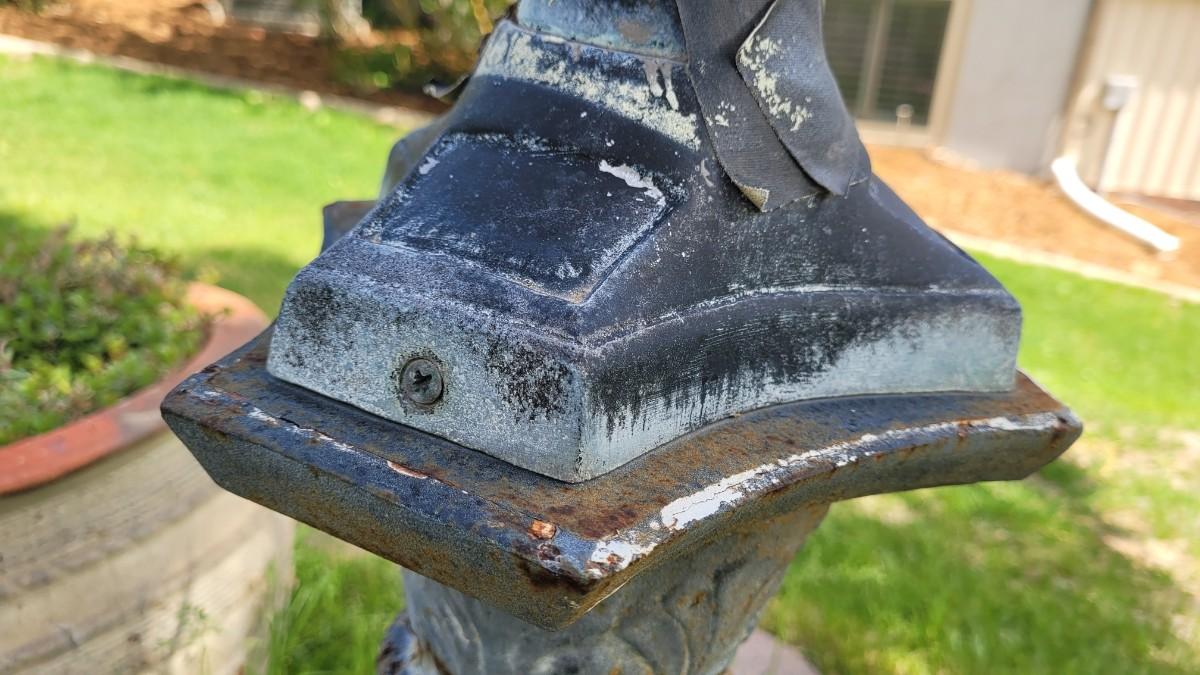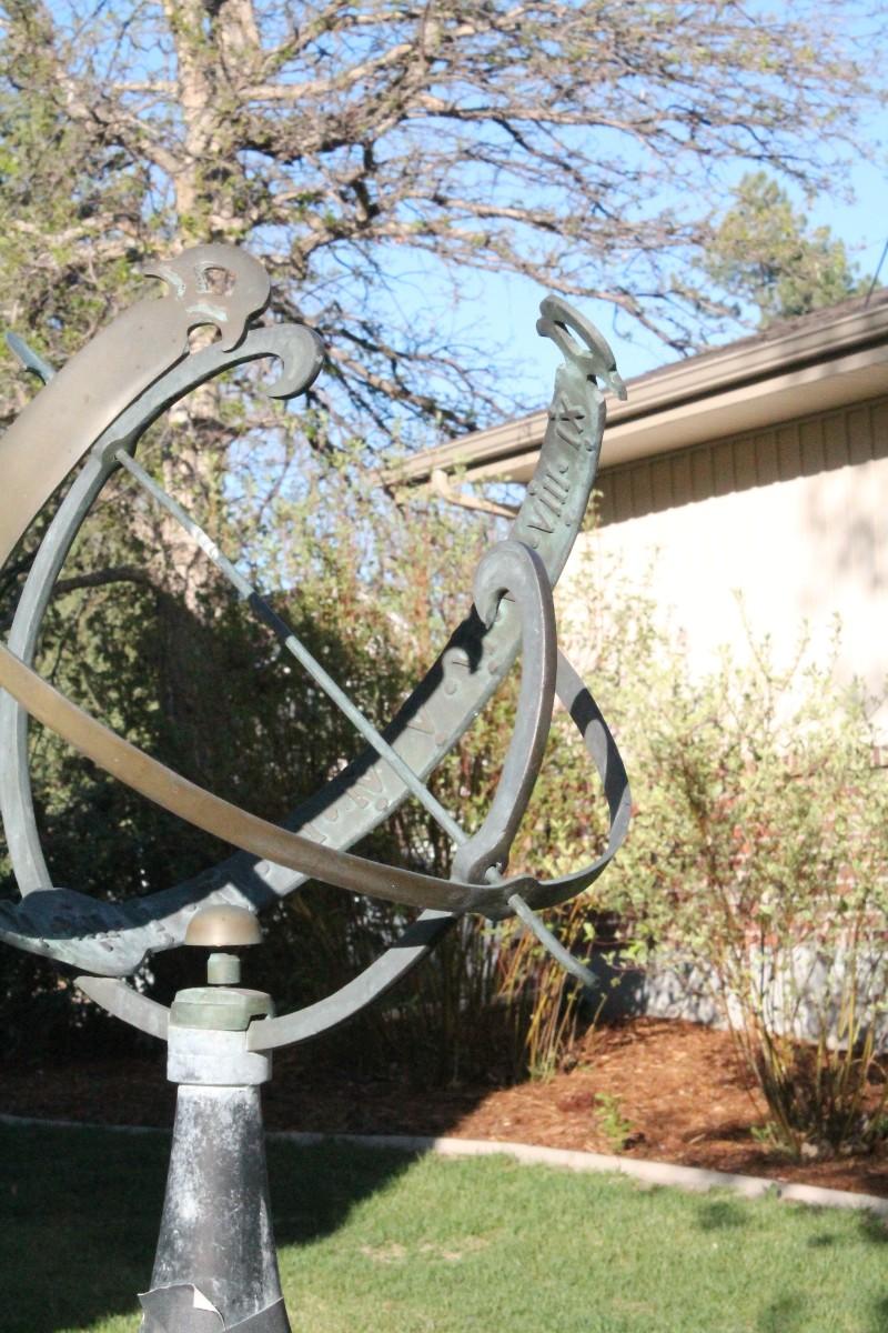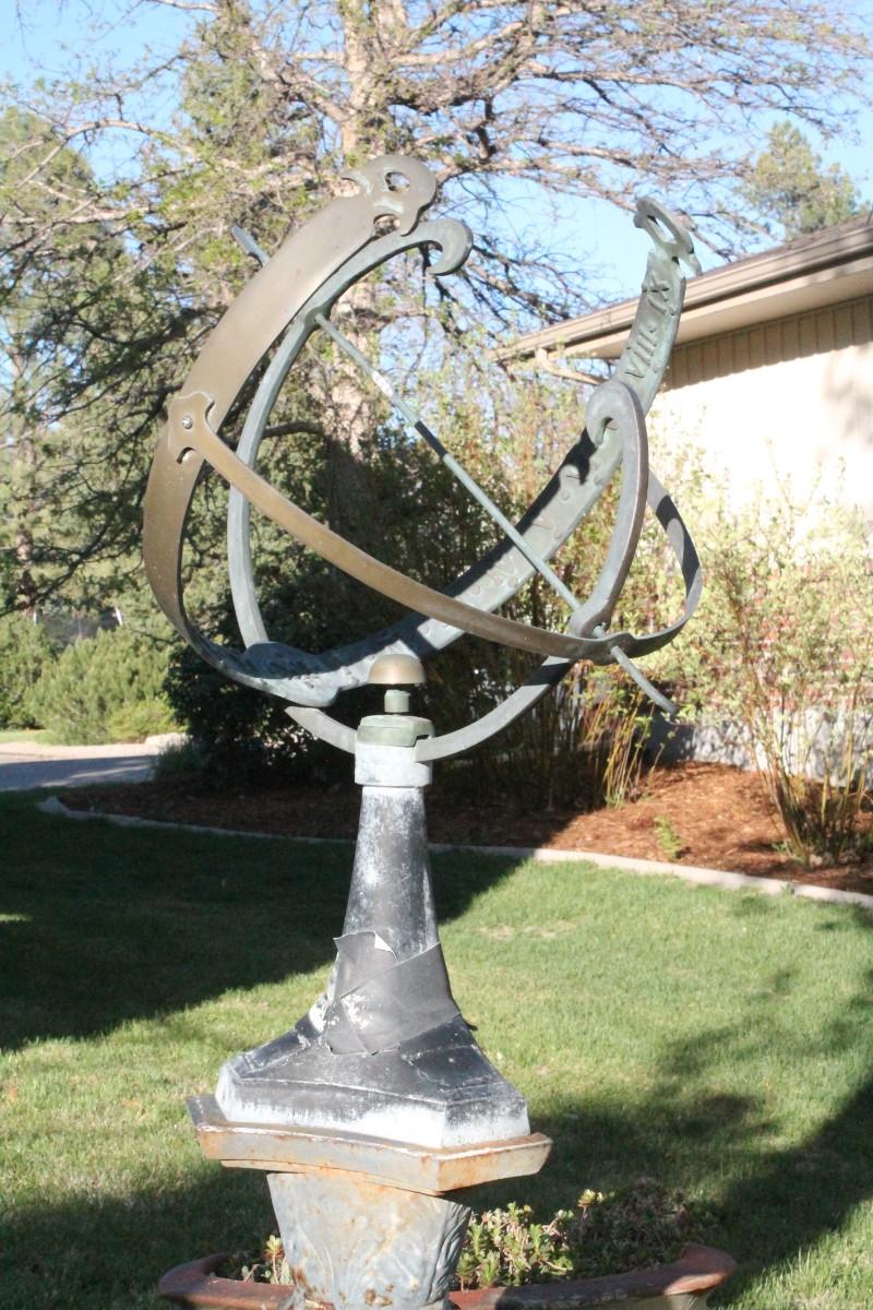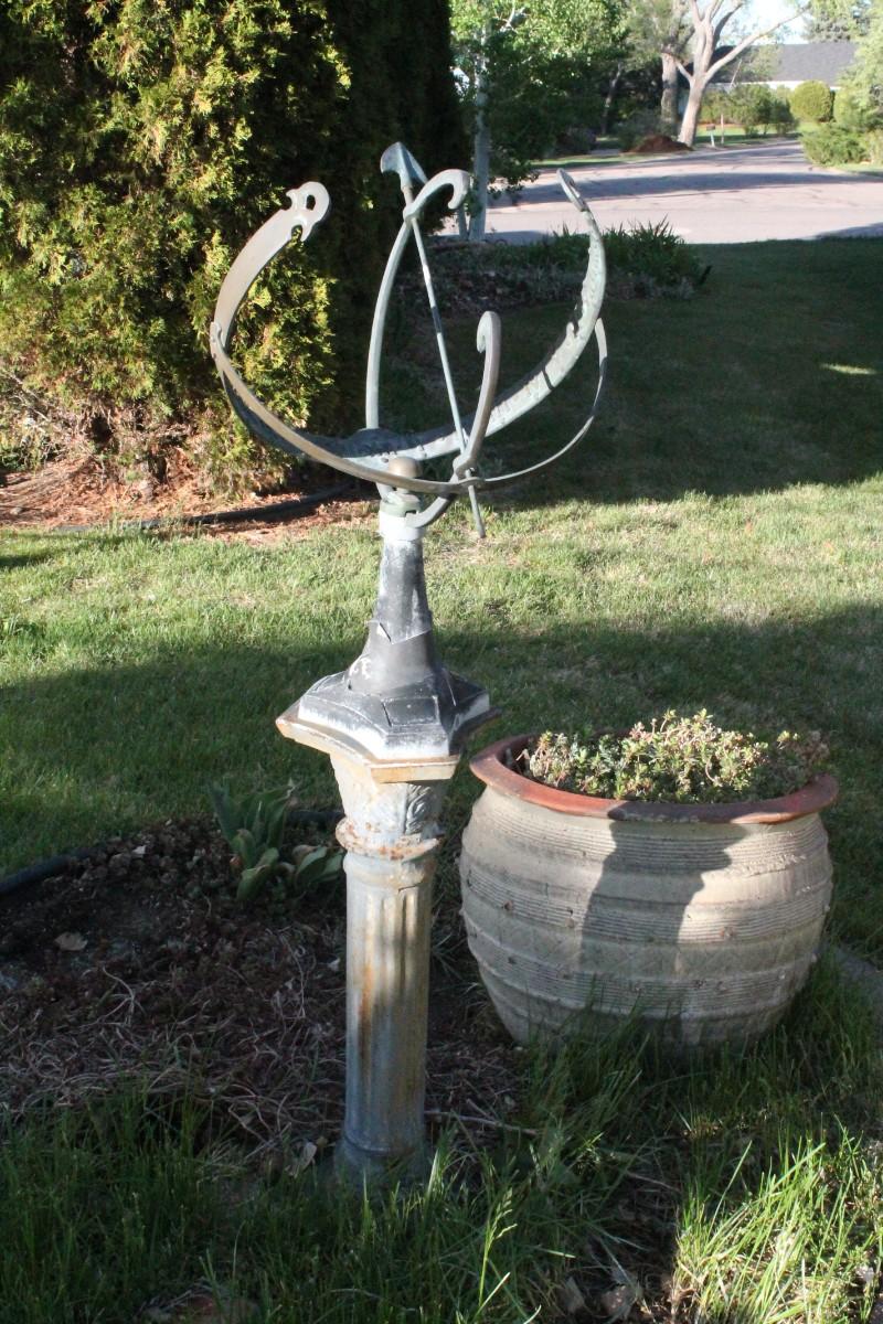 Large outdoor Sundial w/ ornate stand. About 56" tall. The armillary without the stand is 24". It attaches with 2 screws.