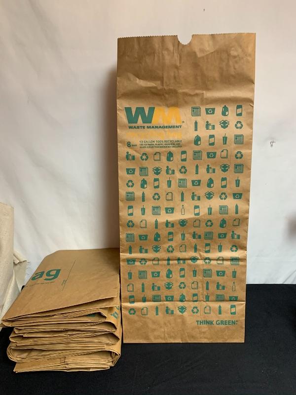 Lot # 49 (8) 2 PLY PAPER RECYCLING BAGS 13 Gallon DURO THINK GREEN 29" TALL
