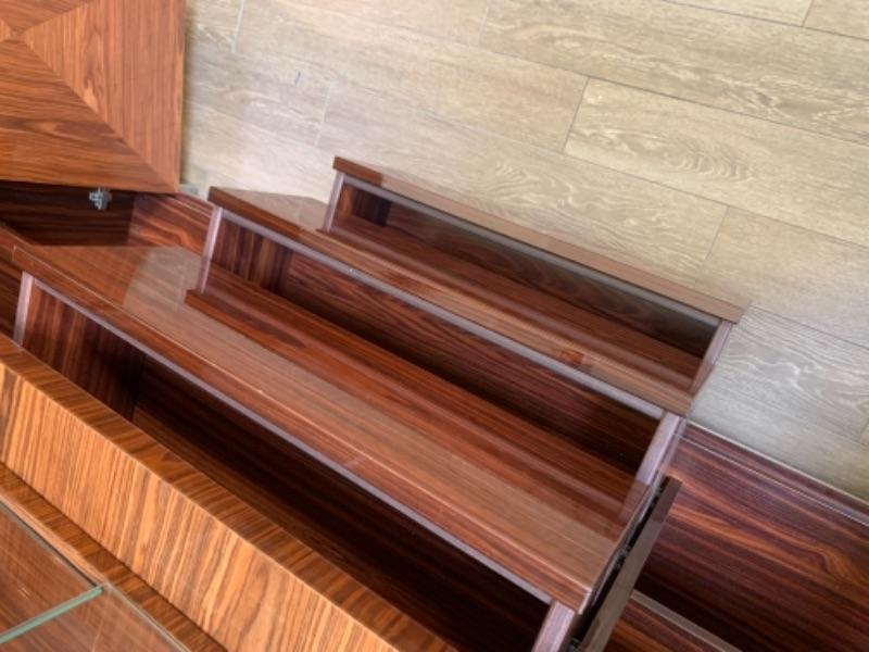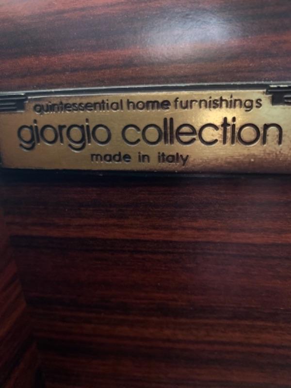 Lot 49. Amazing Giorgio Collection lighted breakfront, whisky colored with geometric design, glass doors and chrome fixtures. Total measurements“”76” wide, 20” deep, 85” high. In pristine condition --$4900
