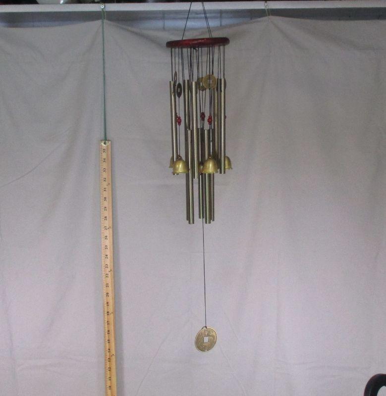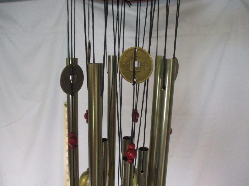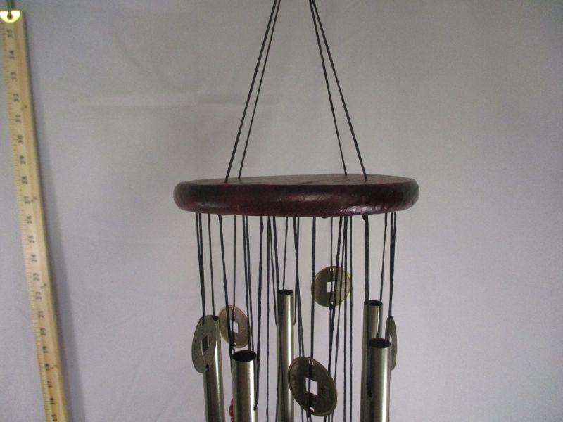 The box that this comes is identifies the maker as Qian Qian Handcrafted. The wind chimes appear to be never used and it measures a total of about 32" long. It gives a very pretty chime.