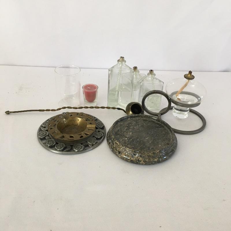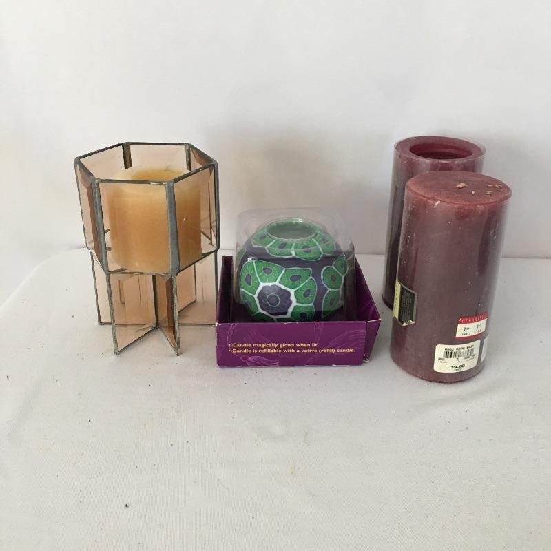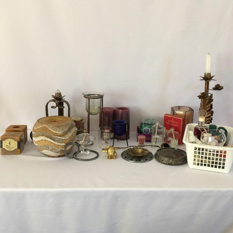 Candleholders, candles and more. Lot includes a plethora of potpourri candles, oil candles with oil, candleholders in a variety of styles and sizes, table candles and more.