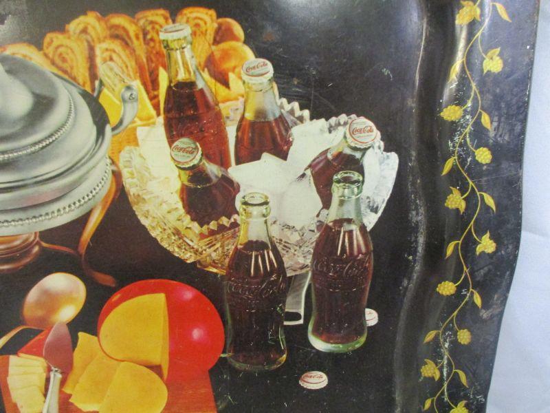 This tray is interesting because you don't realize that it's promoting Coca Cola until you look closely at what is pictured. It is probably 1960s-1970s era. Please view the pictures for condition. It measures about 18.75" x 13.5".