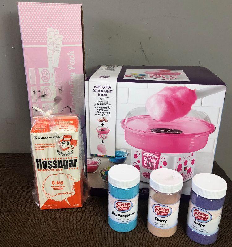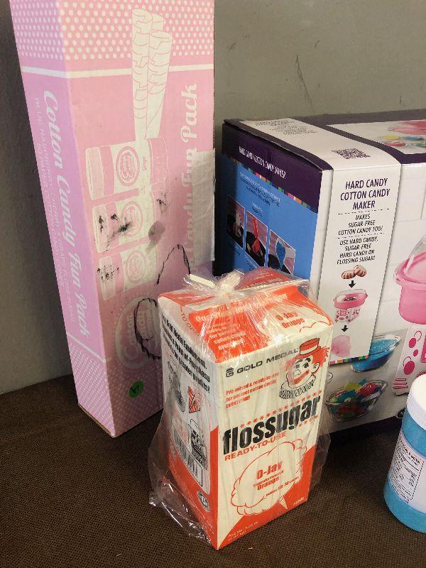 Lot #49 Cotton candy machine, floss, cones, flavor
