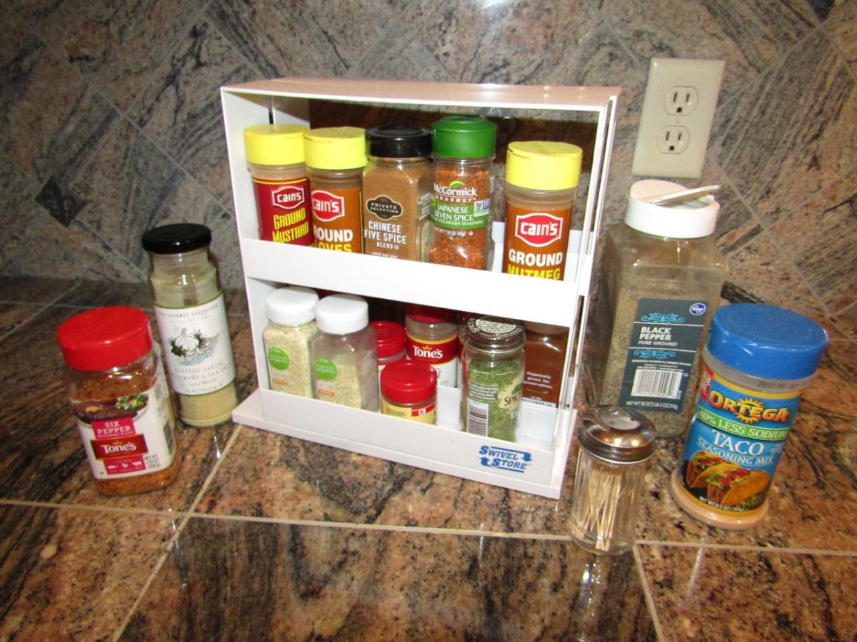 LOT 49 CUPBOARD SPICE RACK AND SPICES