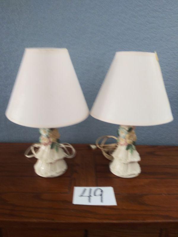 2 MATCHING FLORAL CERAMIC TABLE LAMPS WITH SHADES