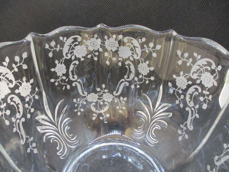 This pattern was made by Fostoria between 1936-1982 and this piece is in excellent condition. It is in the "baroque" style and is 4.5" tall and about 6" in diameter. Summer's coming - you can serve your ice in style! For those of you who re-sell, this is still a marketable pattern and I couldn't find one for sale anywhere.