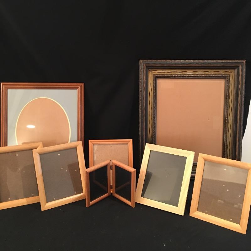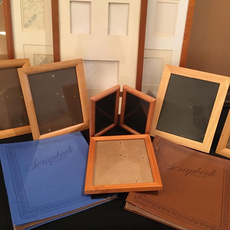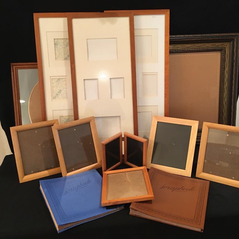 Get all your frame needs in one fell swoop with this collection of picture frames. Lot includes two scrapbooks and a selection of Wooden picture frames in a variety of sizes