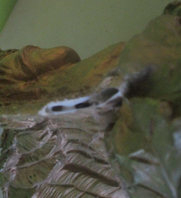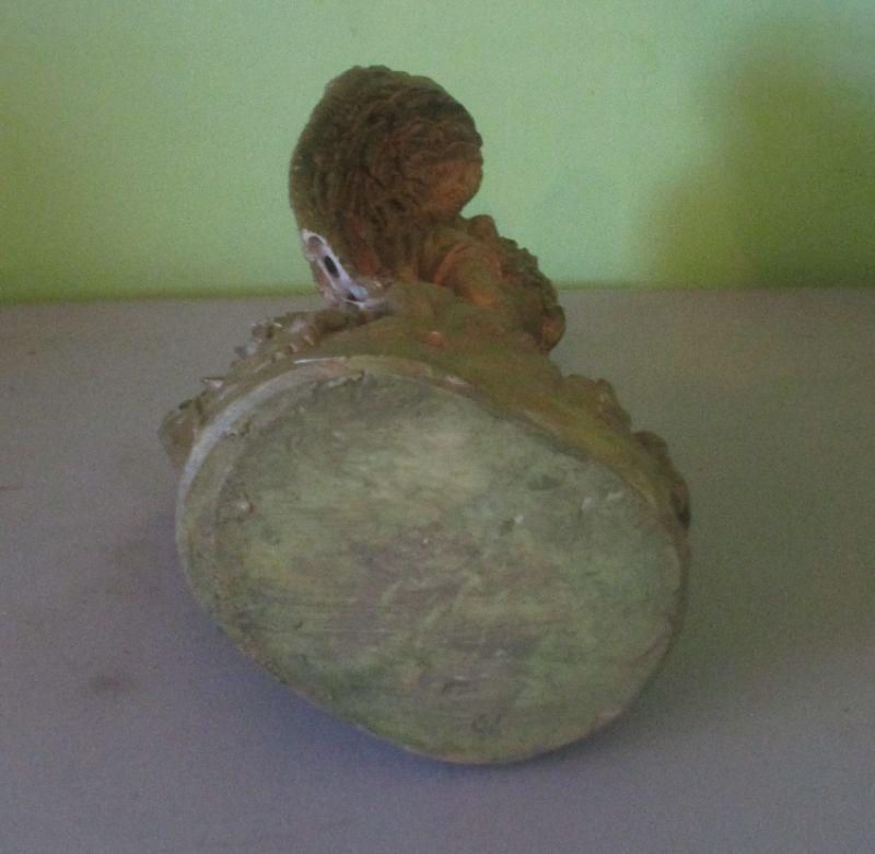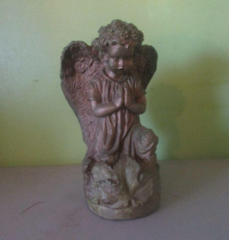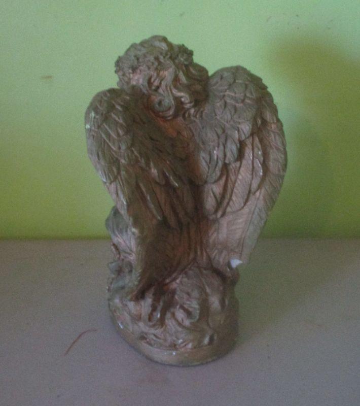 This little girl is about 12.5" tall and the only major issue is that the bottom of one wing is chipped off. She has a couple of paint loss spots on her back, but they aren't that significant.