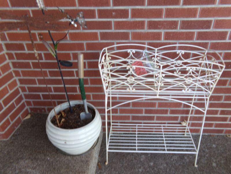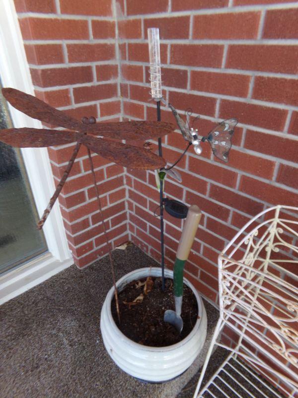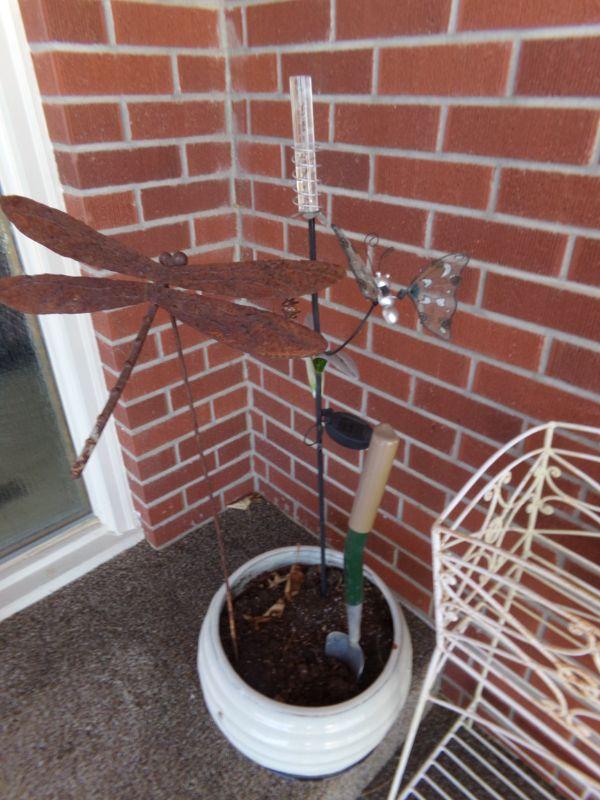 Large ceramic flower pot, Iron dragonfly and solar lighting butterfly