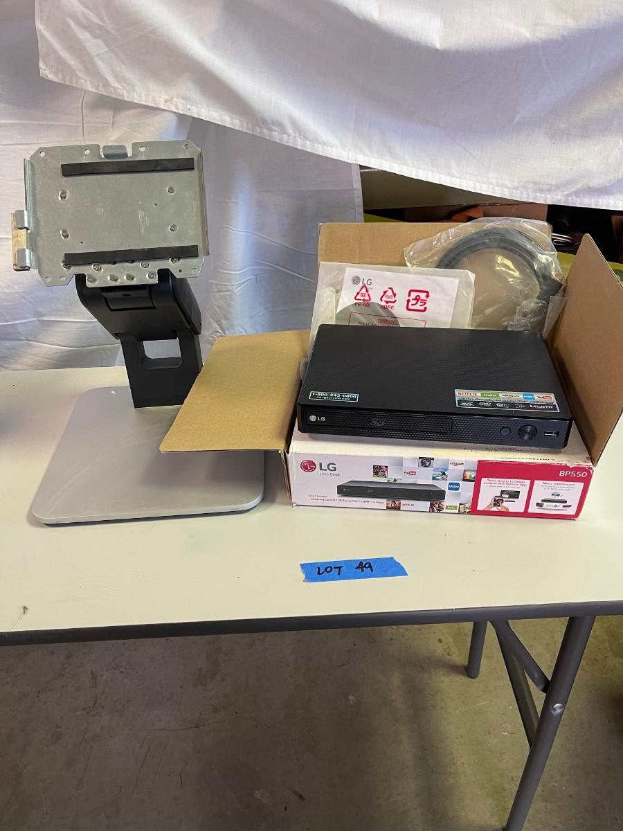 Lot 49 - LG DVD Player new in box and computer monitor holder/stand