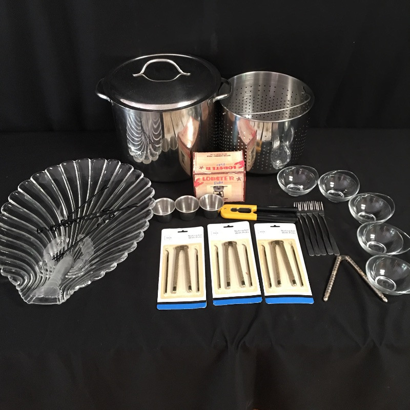 Invite your friends and treat them and yourselves to a lobster broil, you will have all the essentials right here. Included is a large pot, butter warmer, butter bowls, lobster crackers, forks and large lobster serving platter. Pot measures 11” D x 8.75” tall.