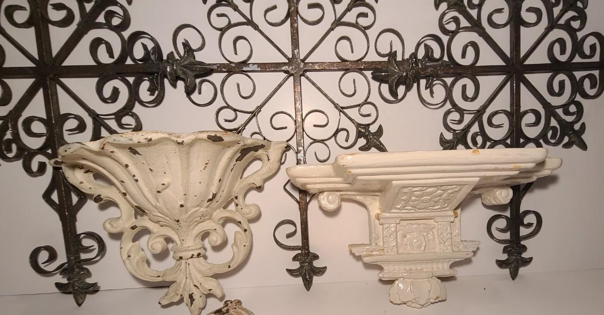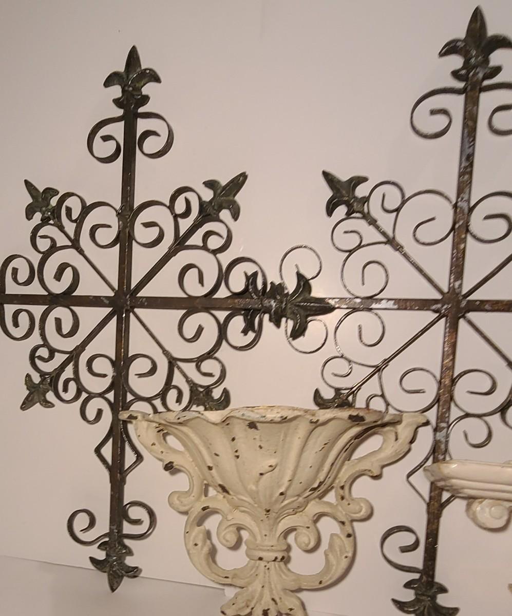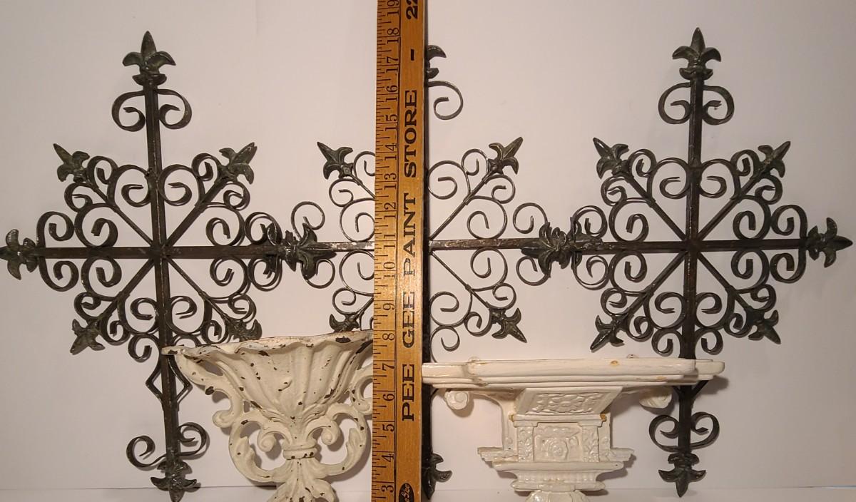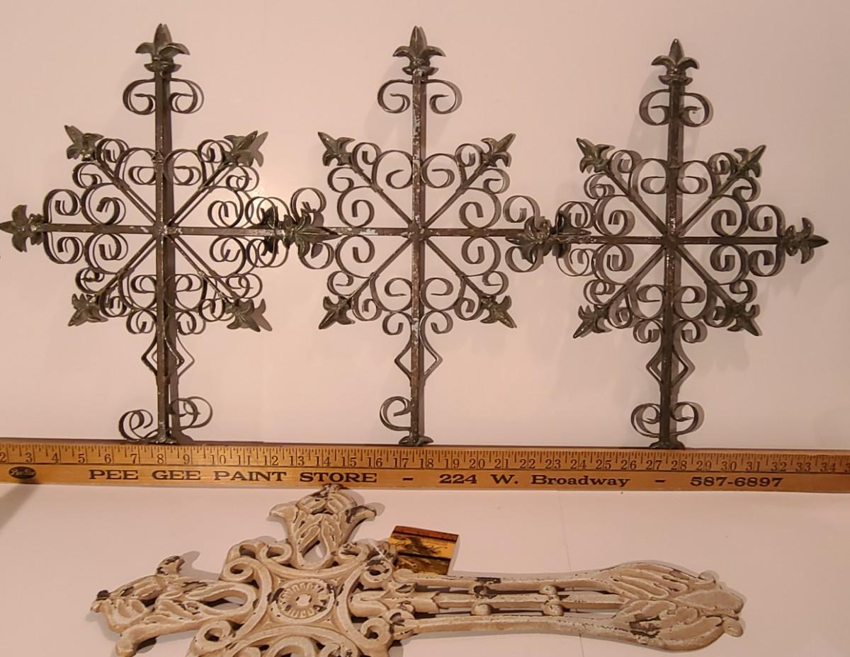 Metal crosses, Metal wall ornaments, metal wall planter, and chalkware shelf; all great for indoors or out. Please see all pictures for content of the lot, condition of the lot, and measurements if taken. Pictures are the best representation of the items listed and items are untested unless indicated in description. Thank you for looking and have fun bidding!