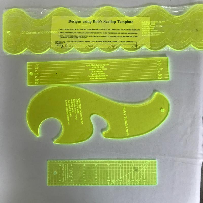 So many new quilting rulers that we split them up into a few lots. You’ll find Rulers by Sharon Hultgren and Rob’s Rulers. This includes Neon Colored Quilt Block Patterns. See photos. Shipping available