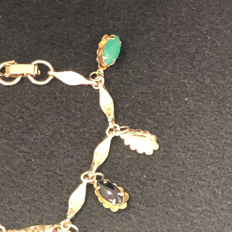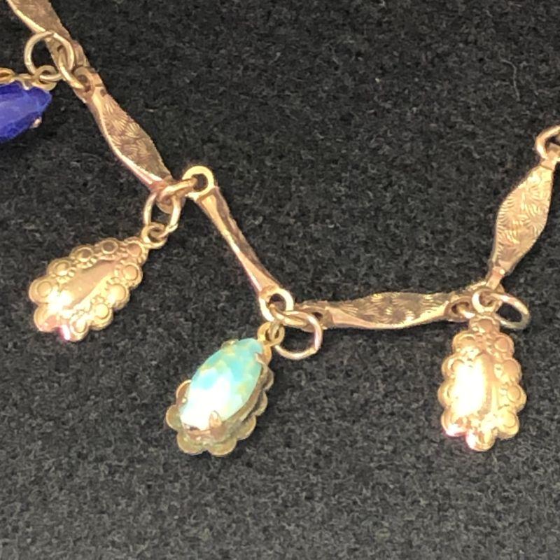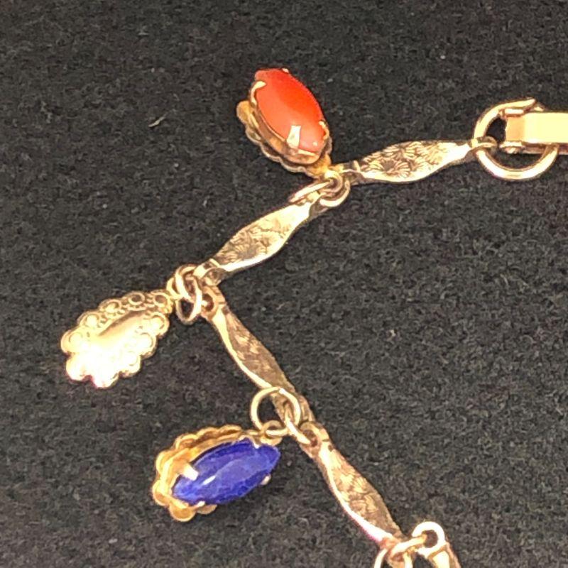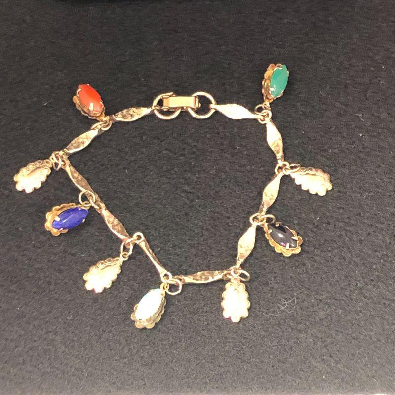Pretty bracelet that measures about 7" in length. I'm not sure (not guaranteeing), but it appears to me that the accent pieces are actual stone fragments or really good imitations.