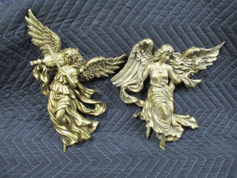 Lot 49 - Pair Of Vintage Chalk Ware Wall Hanging Angels