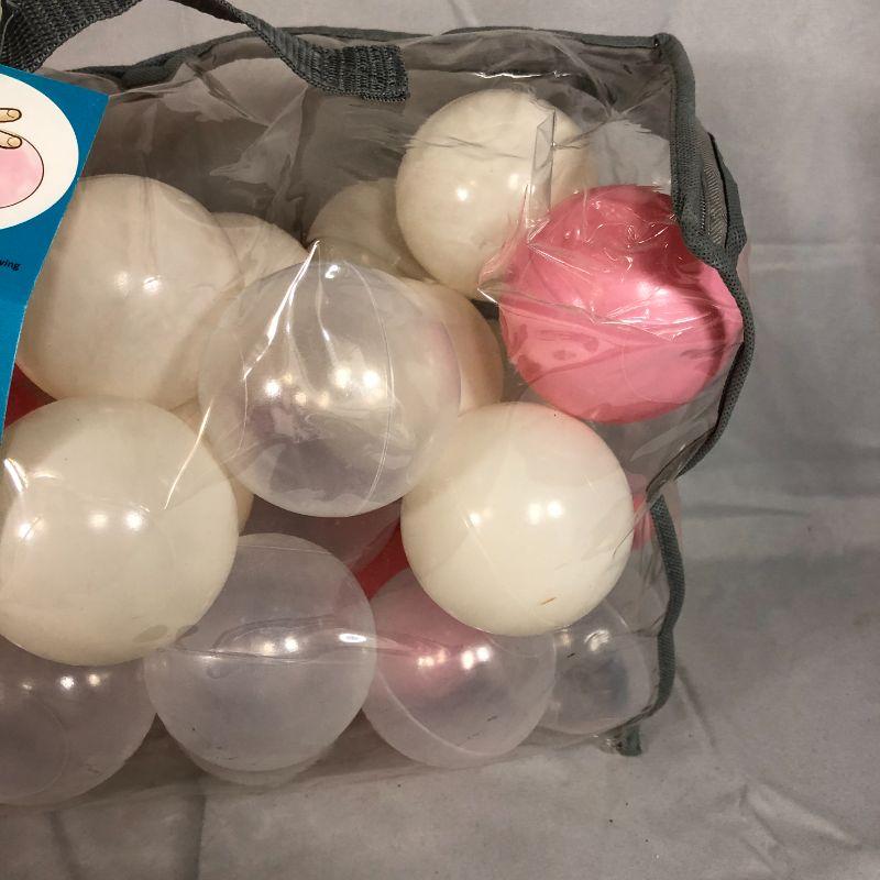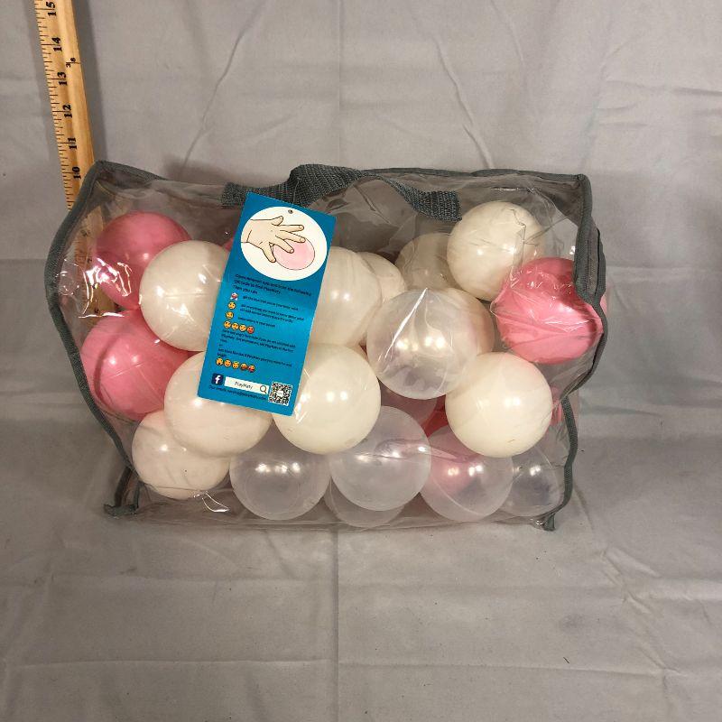 These are similar to the balls that you might find in a ball pit for kids. They are new in the package and used with young children who are learning how to grasp. They are somewhat soft, but they are plastic so they are also somewhat firm.