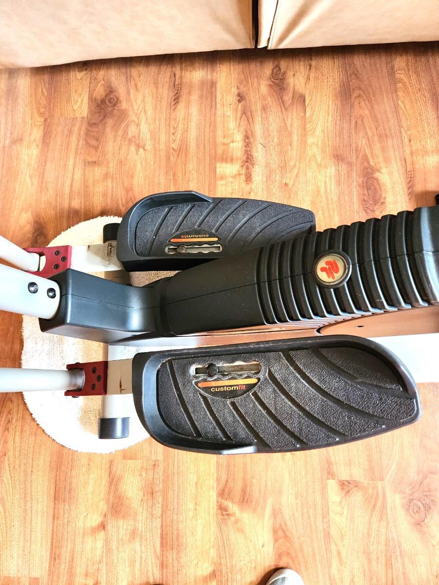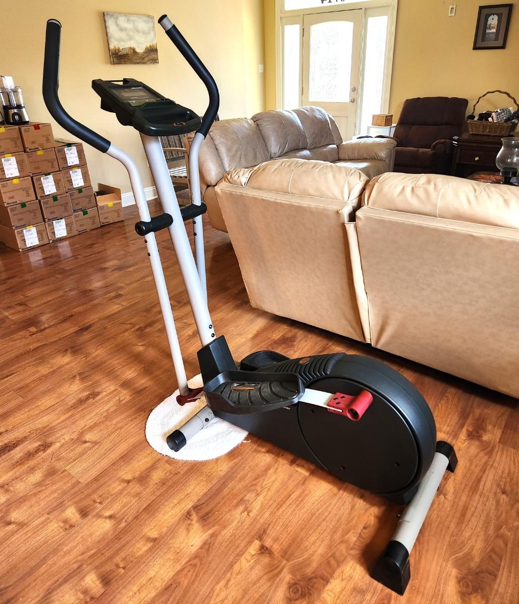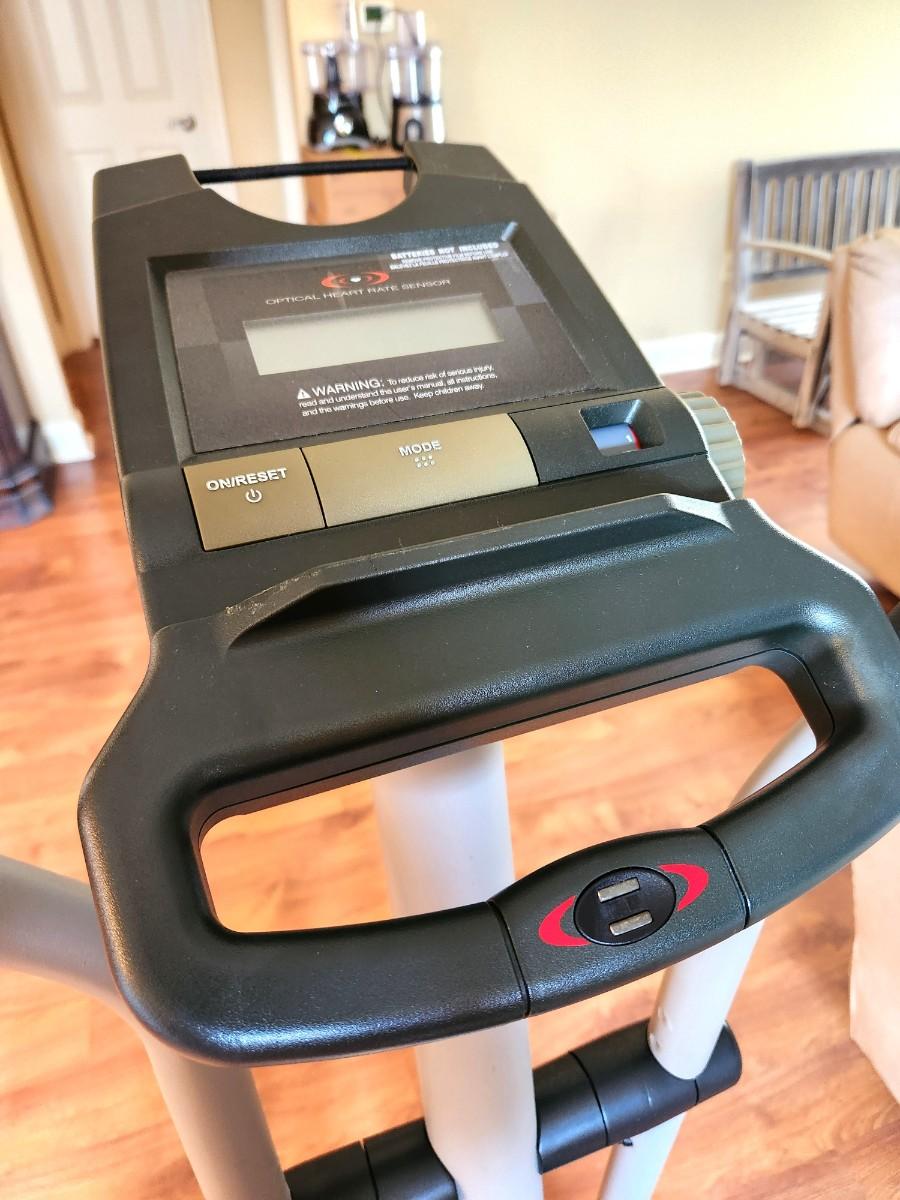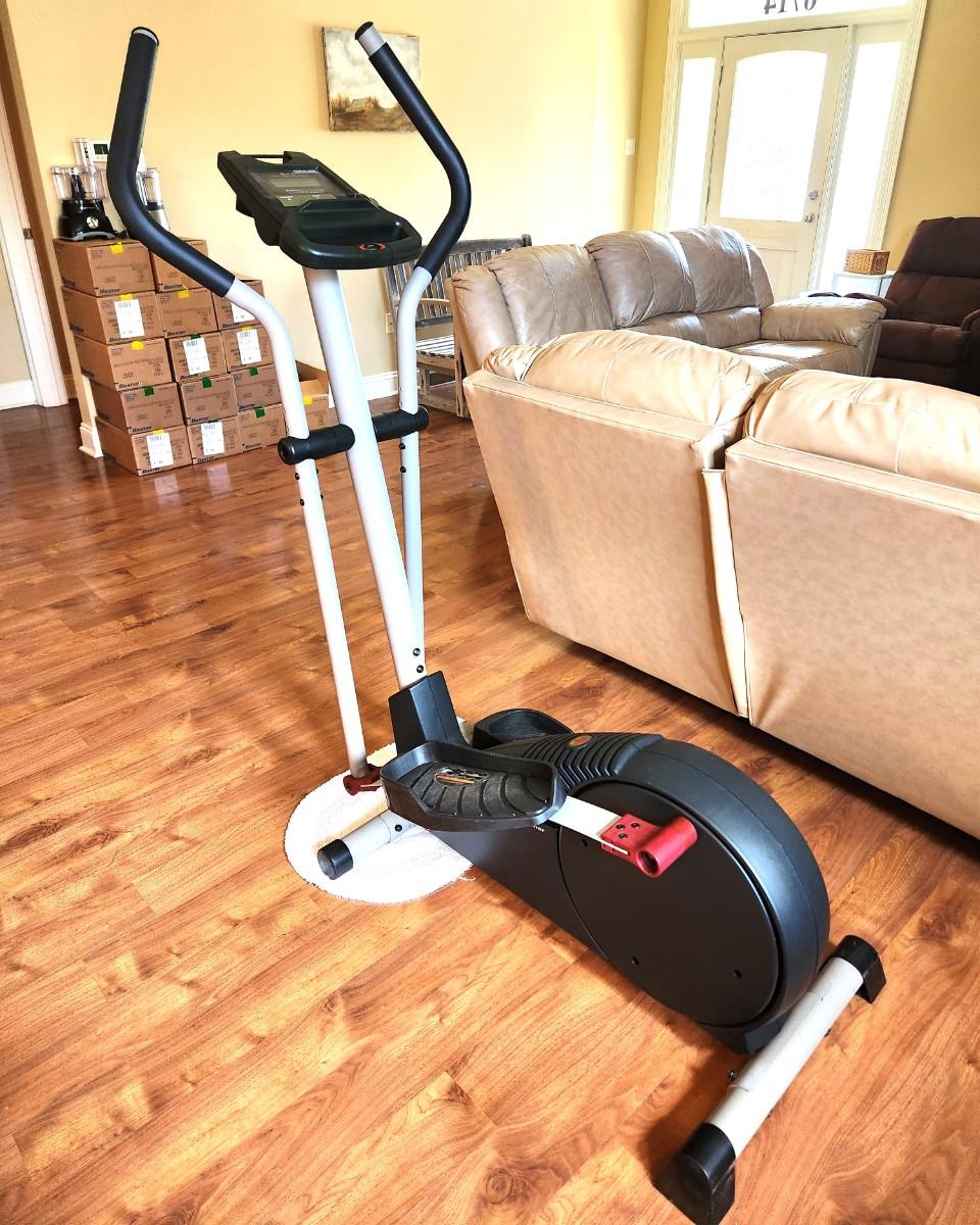 Proforma brand Elliptical Exercise machine. Data panel needs batteries. 5 feet tall, 49" long at the base. Appears to be in good working condition - foot/arm action smooth. This machine is upstairs.