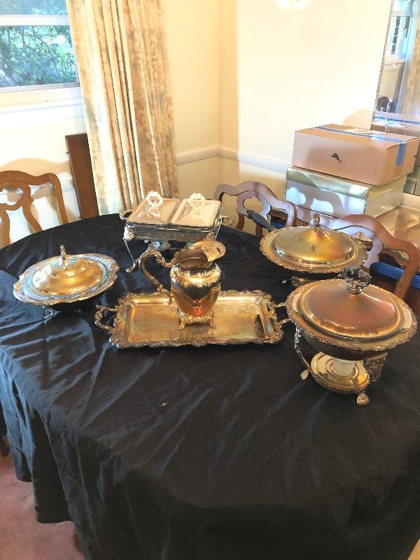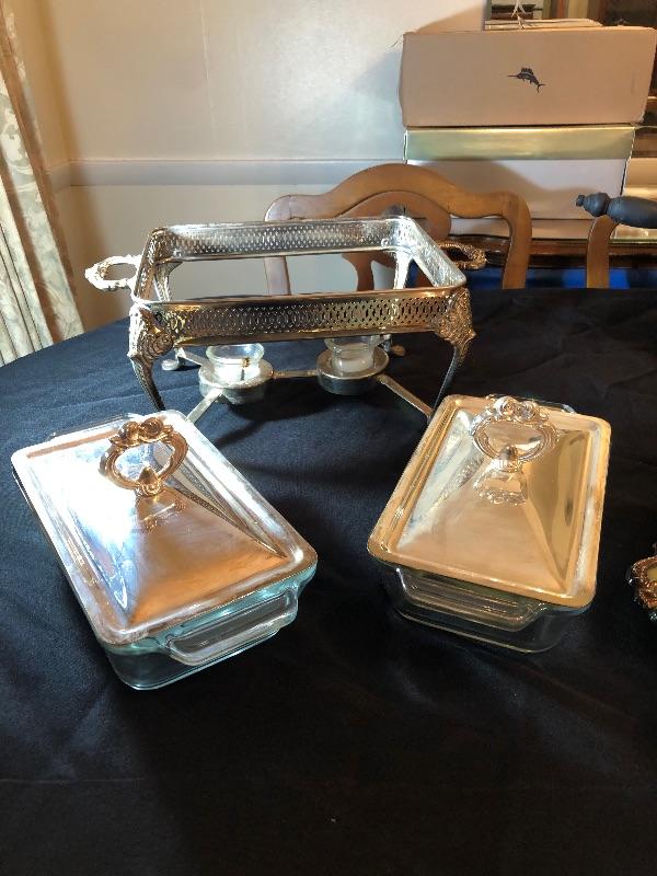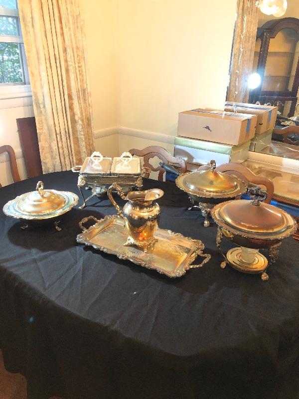 Lot 49 - Silver: Chafing Dishes, Pitcher, Tray, Serving Dish etc