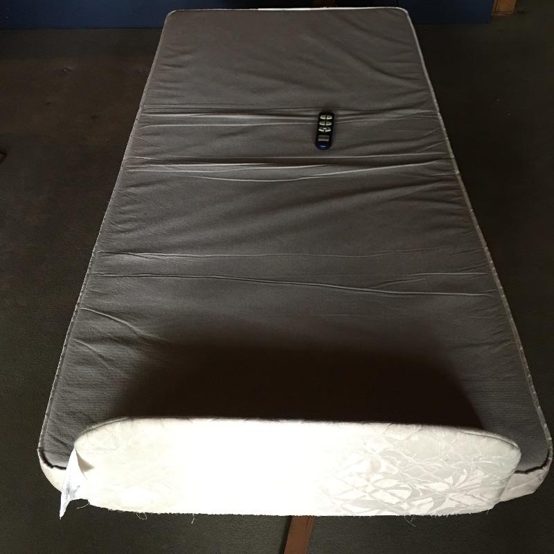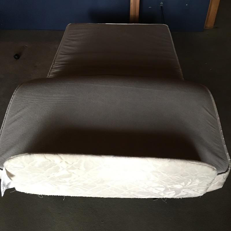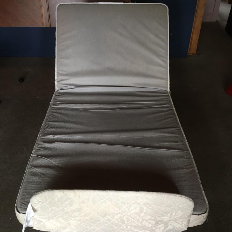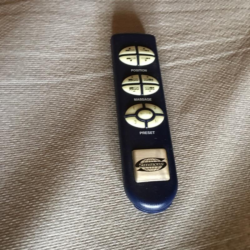 Simmons motorized twin bed with remote. It can move legs and head up or down and it even has a massage button that makes it vibrate. Remote does not always work, it appears it needs new batteries but we cannot be sure. Bed worked when tested. There is no mattresses with this frame.