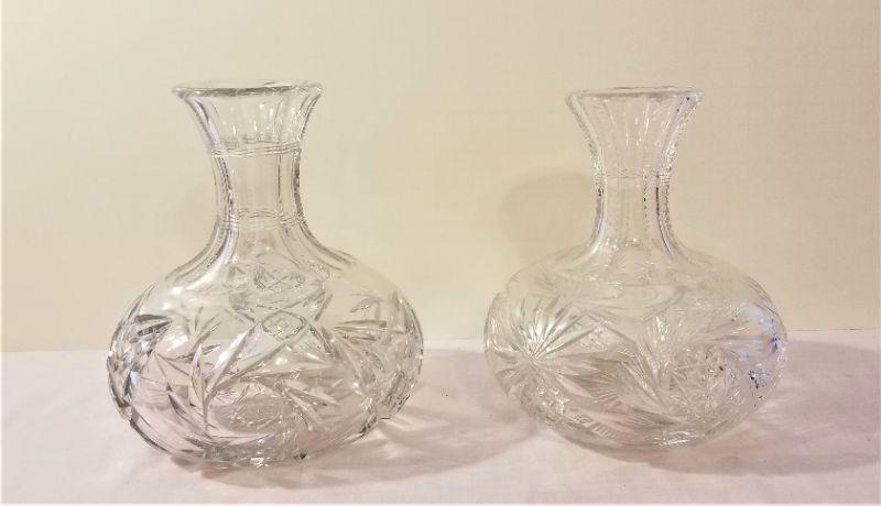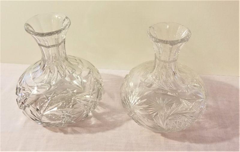 Two nice antique cut glass water decanters - late 19th's/early 20th century. Each about 9: tall, pin wheel cut. Both in excellent condition.