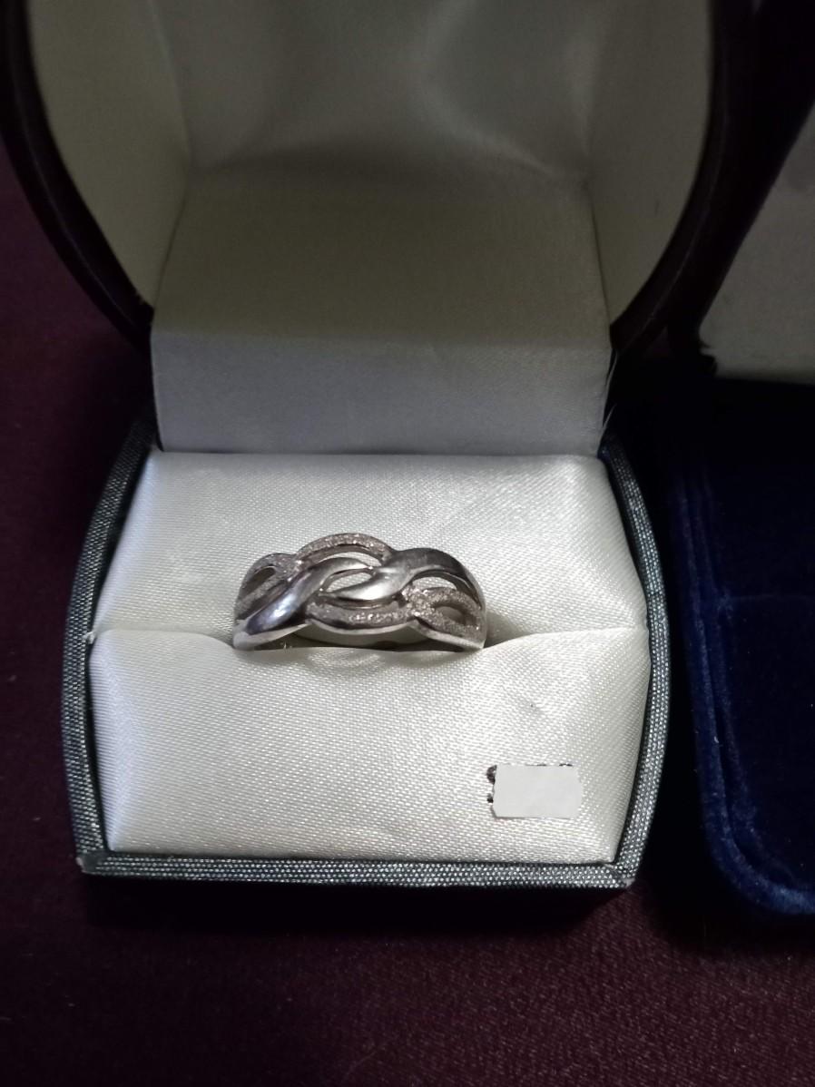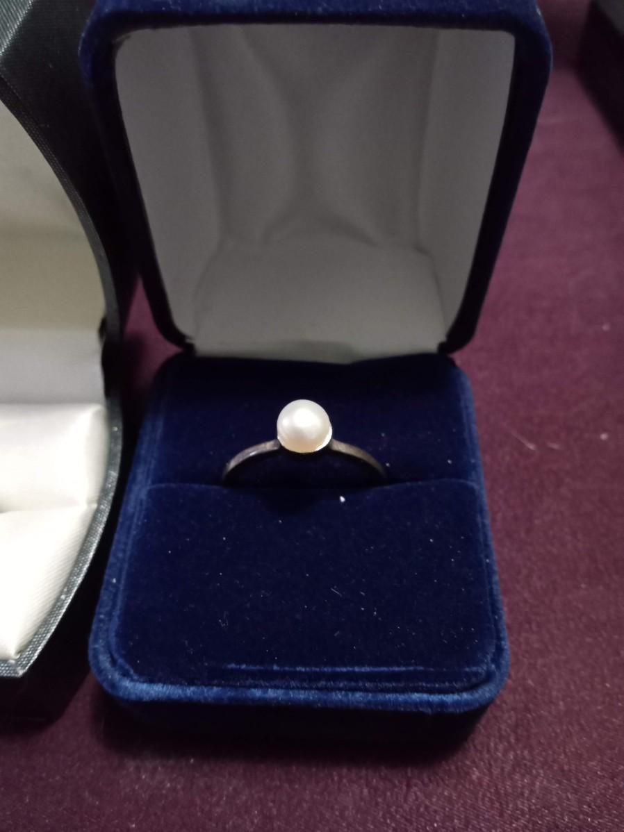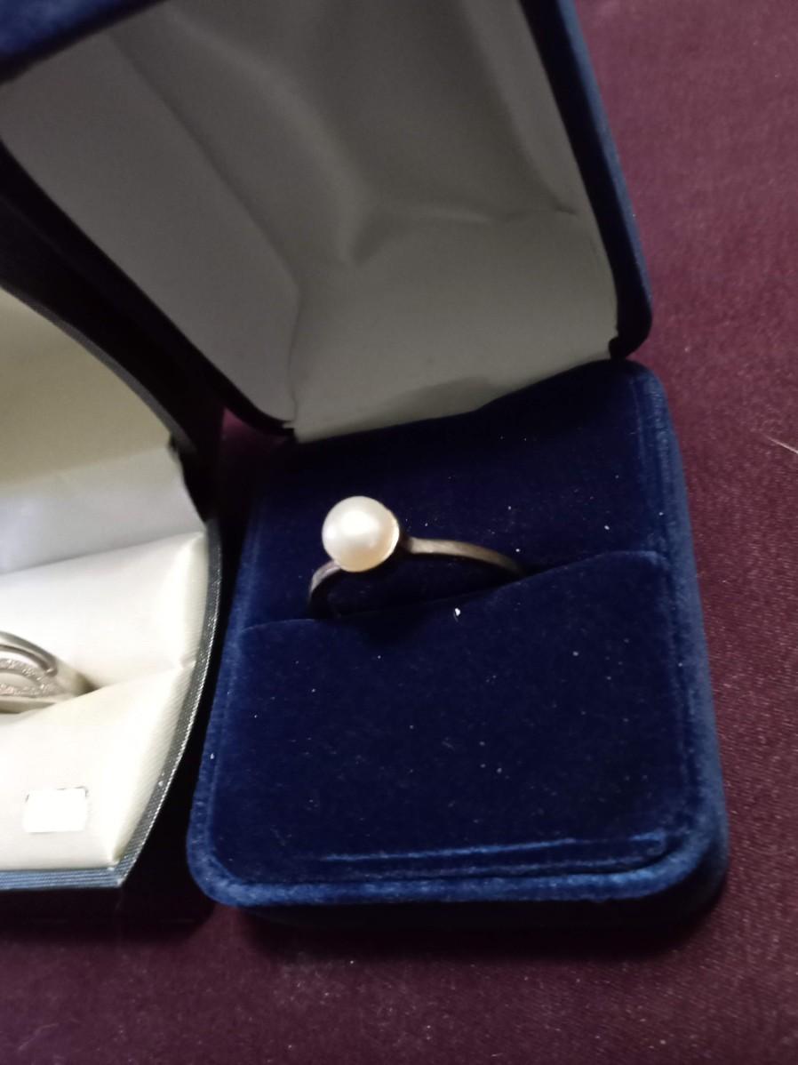 STERLING WEAVED RING AND A PEARL SET IN STERLING SILVER, BOTH ARE SIZE 8 AND THEIR TOTAL WEIGHT IS 6.65g